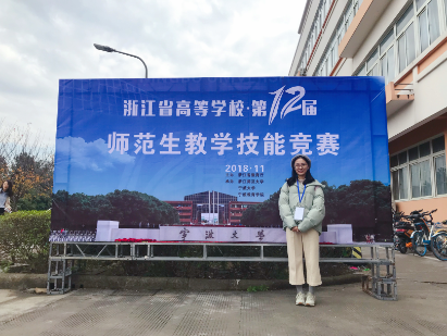 2018年11月23-25日,浙江省高等学校第十二届师范生教学技能竞赛决赛在宁波大学举行,计算机151叶彬慧同学代表17吃瓜