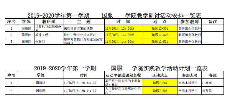 附件:杭州国际服务工程学院2019-2020-1学期教学观摩课、教学公开课、教研活动等安排表