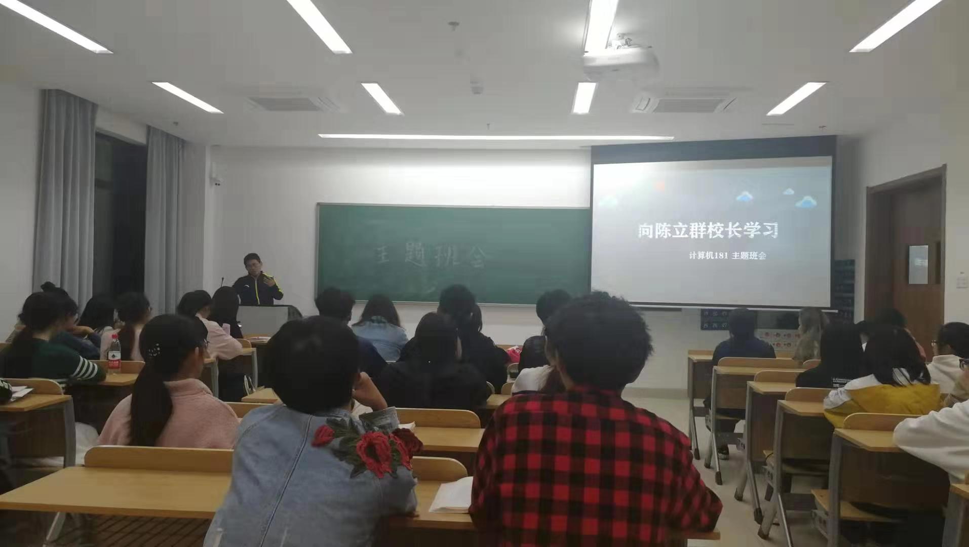 近日,学院计算机(师范)181班开展了“向陈立群校长学习”的主题班会。班主任、辅导员和全体同学到场参加。