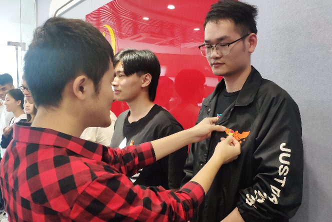 学院也开展了一次“老党员为新党员戴一枚党徽”仪式,并重温了入党誓词,以增强党员的理想信念。