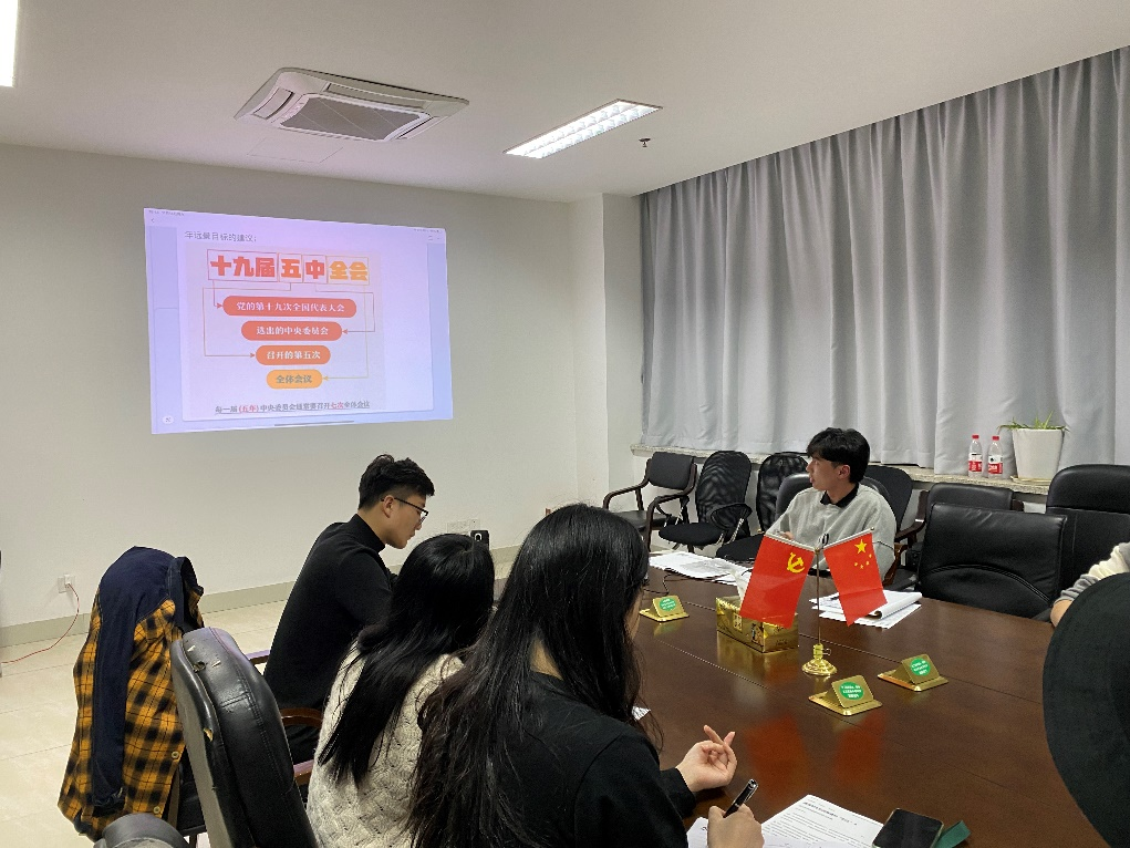 在会议的最后,党支部书记为整个党员活动日做了一个总结。我们要围绕学习贯彻习近平总书记在党的十九届五中全会上的重要讲话精神,深刻认识我国“十三五”时期取得的突出成就,准确把握“十四五”时期重要战略机遇期。从身边的小事做起,以研究生的身份为我们的祖国添荣加彩,担负起时代赋予我们的光荣使命。