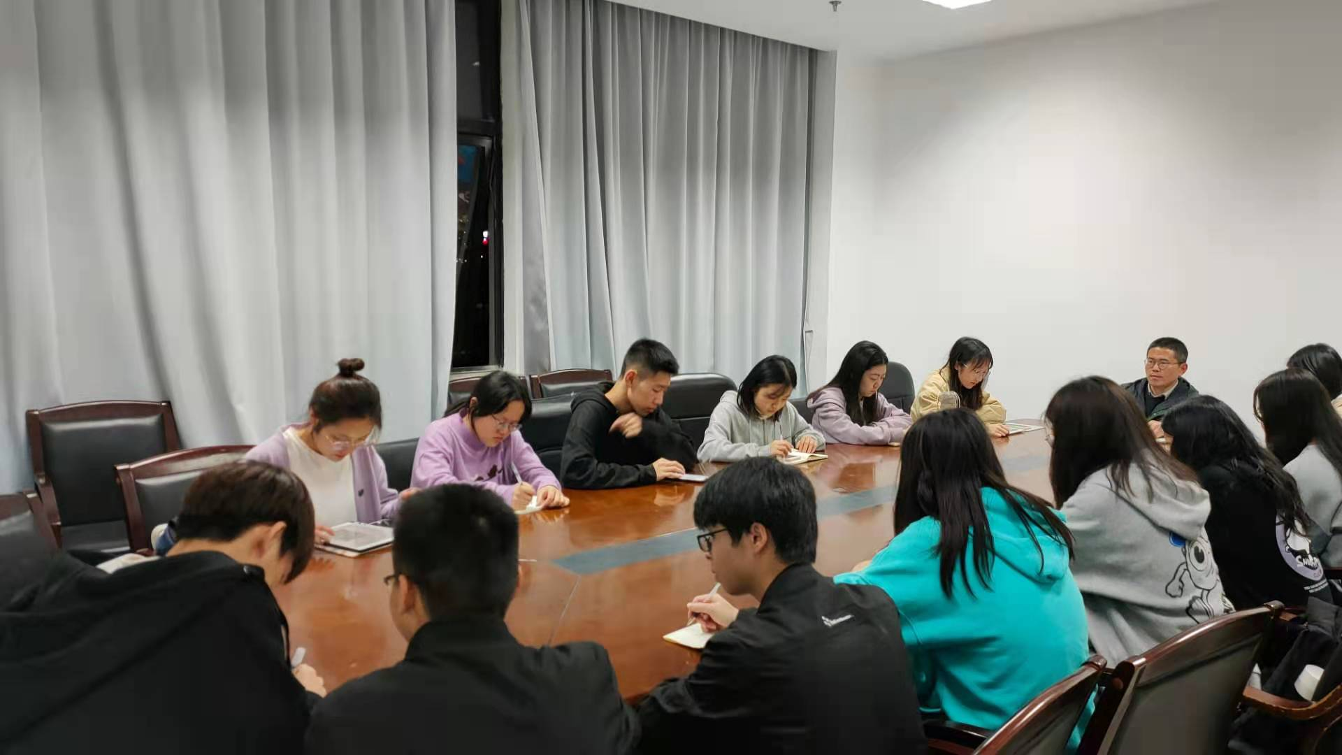 首先杨鹏飞同志和我们分享了他的学习心得。在杨鹏飞同志看来,感触最深的两点,第一就是”求真务实“的精神,习近平总书记在浙江主政期间,经常到各地考察,比如说:下姜村、余村等地,在余村考察后提出”绿水青山就是金山银山“这样的金句,充分结合浙江的发展实情,从实践中来,到实践中去;第二就是”敢于创新“的精神。习近平总书记强调,创新是引领发展的第一动力,抓创新就是抓发展,谋创新就是谋将来。作为一名思政辅导员,应好好学习和践行这两种精神,求真务实就是把思政工作做实做细,带领学生去探索”真善美“;敢于创新,就是要勇于去做一些以前工作上没有做过的事情,突破自己的舒适区,不断挑战自己。