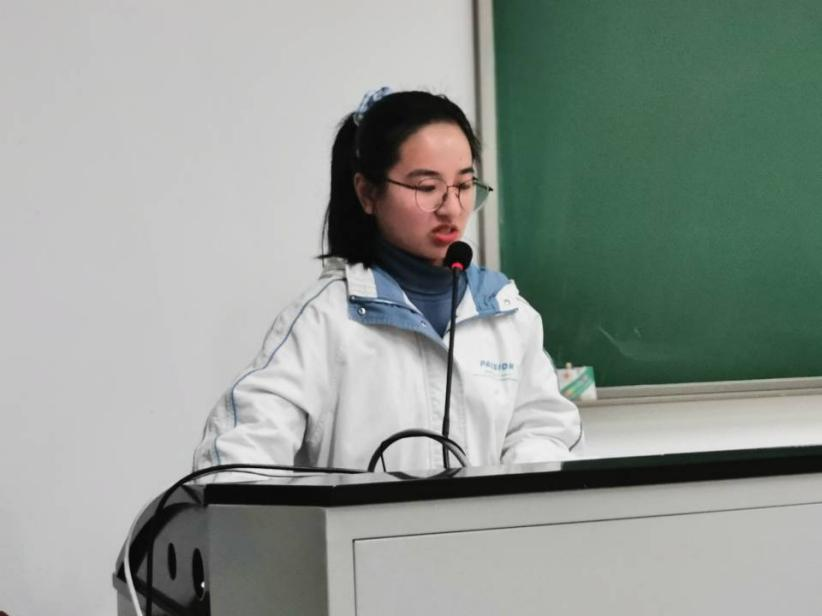 图为计算机195 团员代表周婉婧分享反诈防骗心得