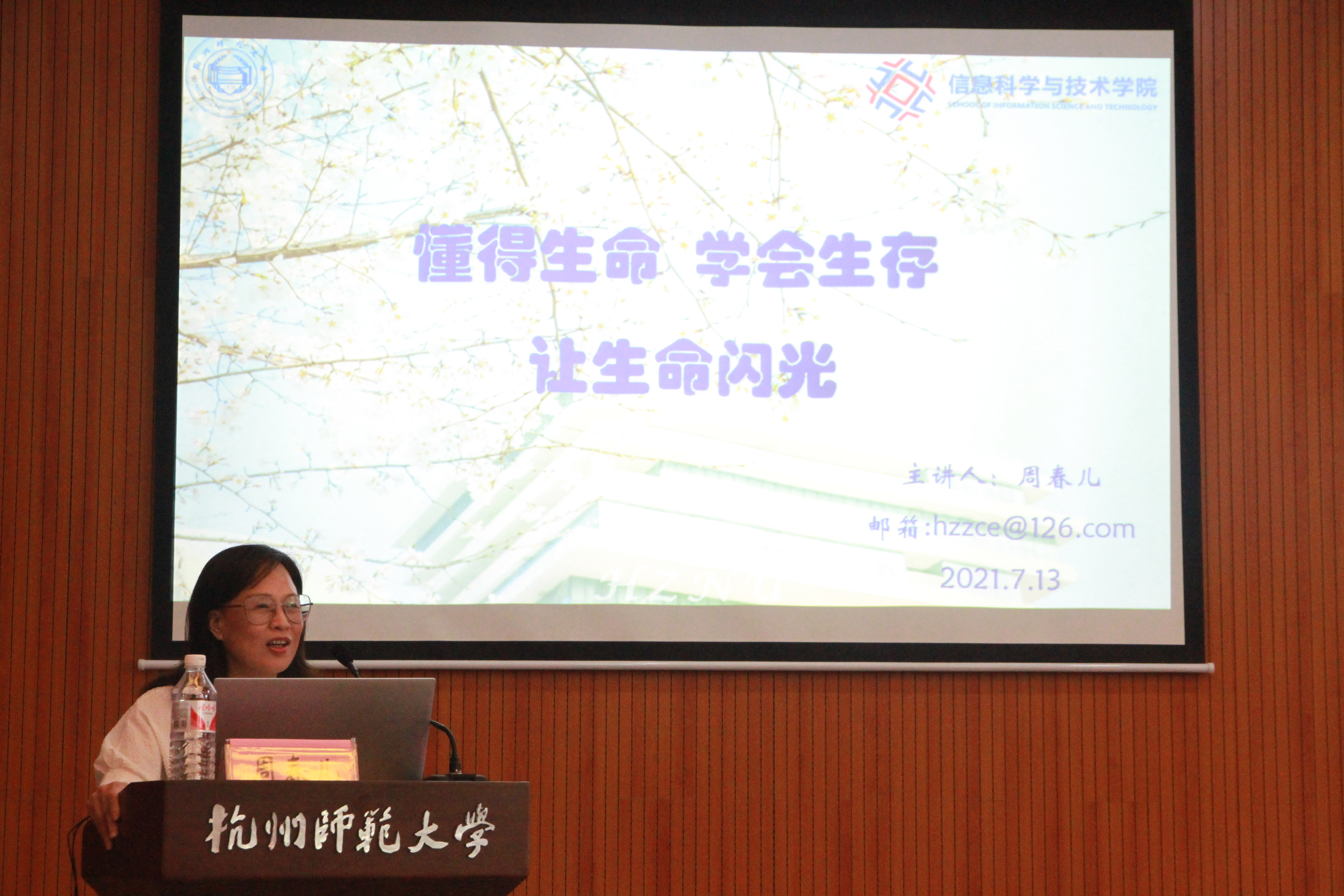 2021年7月13日下午,17吃瓜 于校学术交流中心A-118成功举行《懂得生命,学会生存,让生命闪光》的生命教育专题讲座。17吃瓜 党委书记周春儿研究员为主讲人,辅导员王熙文主持,全体2018级同学到场聆听。