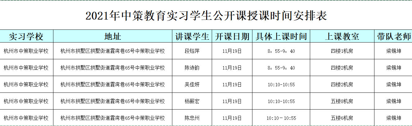 杭州中策职业学校教育实习学生公开课安排