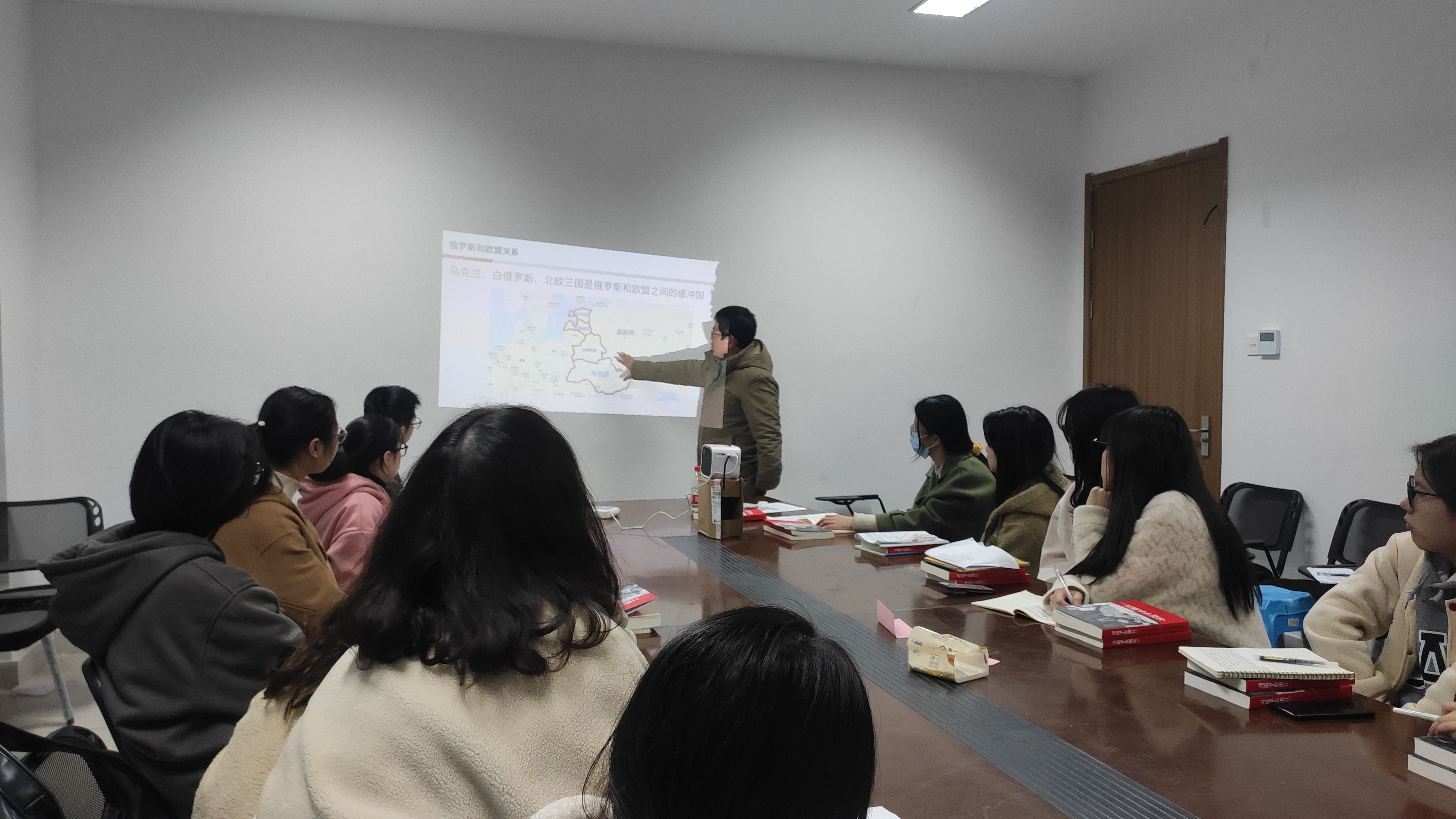 在党课上,杨老师简要分析了当前俄罗斯与乌克兰的历史渊源,并展示了国家在此次事件中对侨民的爱护以及为世界和平做出的努力,更揭示了现代战争中科技发展力量的重要性,同时告诉在座学生党员不仅要专注于技术的精进,同时也要涵养爱国情怀。此外,杨老师指出,作为信息技术师范专业的学生党员,在未来信息技术教师的工作岗位上,要着力提升中小学生的信息素养,为祖国培养好一代高信息素养的青少年。