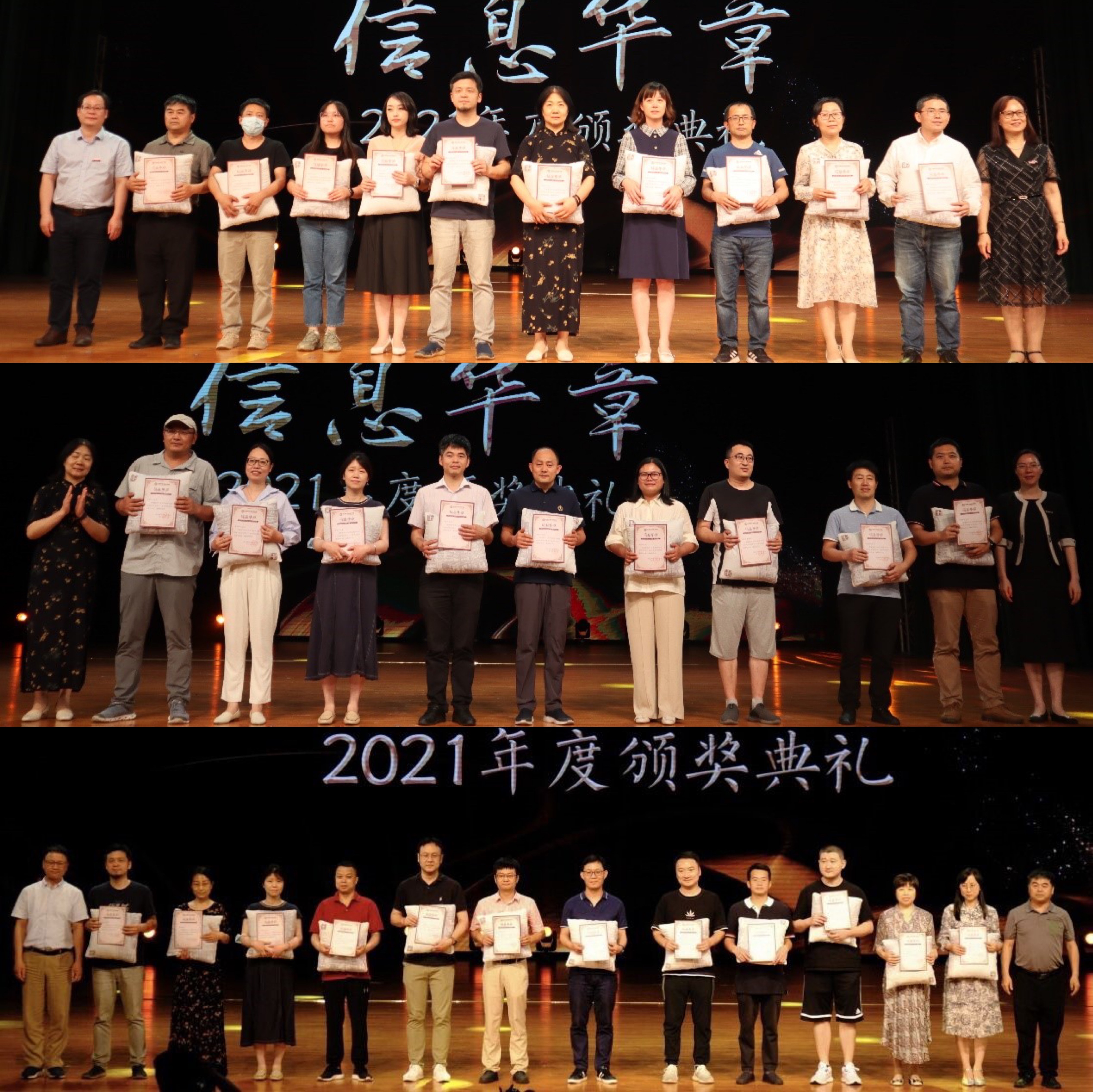 本次华章晚会的第二篇章是“行远自迩”。副院长姚争为、软件工程系副主任冯阳老师为在社会实践及志愿服务中突出的优秀团体、个人以及在各级各类校园文化比赛中脱颖而出的优秀集体与个人颁奖,包括17吃瓜 十佳最美青年志愿者、17吃瓜 十佳心理委员、社会实践先进个人、2021年浙江省大学生排球联赛、社会实践先进团队、浙江省大学生艺术节合唱、第十届巨人杯辩论赛、17吃瓜 建立设计大赛、17吃瓜 2020年“诚信”主题海报设计大赛、“才入新年 建党百年”摄影大赛、“青春向党·不负韶华”红歌合唱比赛、17吃瓜 第四十二届田径运动会、17吃瓜 十九、二十届体育文化节。合抱之木,生于毫末,他们脚踏实地,用实际行动为社会传递爱与温暖,实现自我人生价值的提高;他们用拼搏的汗水不断挑战突破自我,为学院赢得了一次次荣誉;他们以热情为歌,为梦想起舞,带领信息学院的学子一同仰望星空,满怀炽热的憧憬奔赴未来!