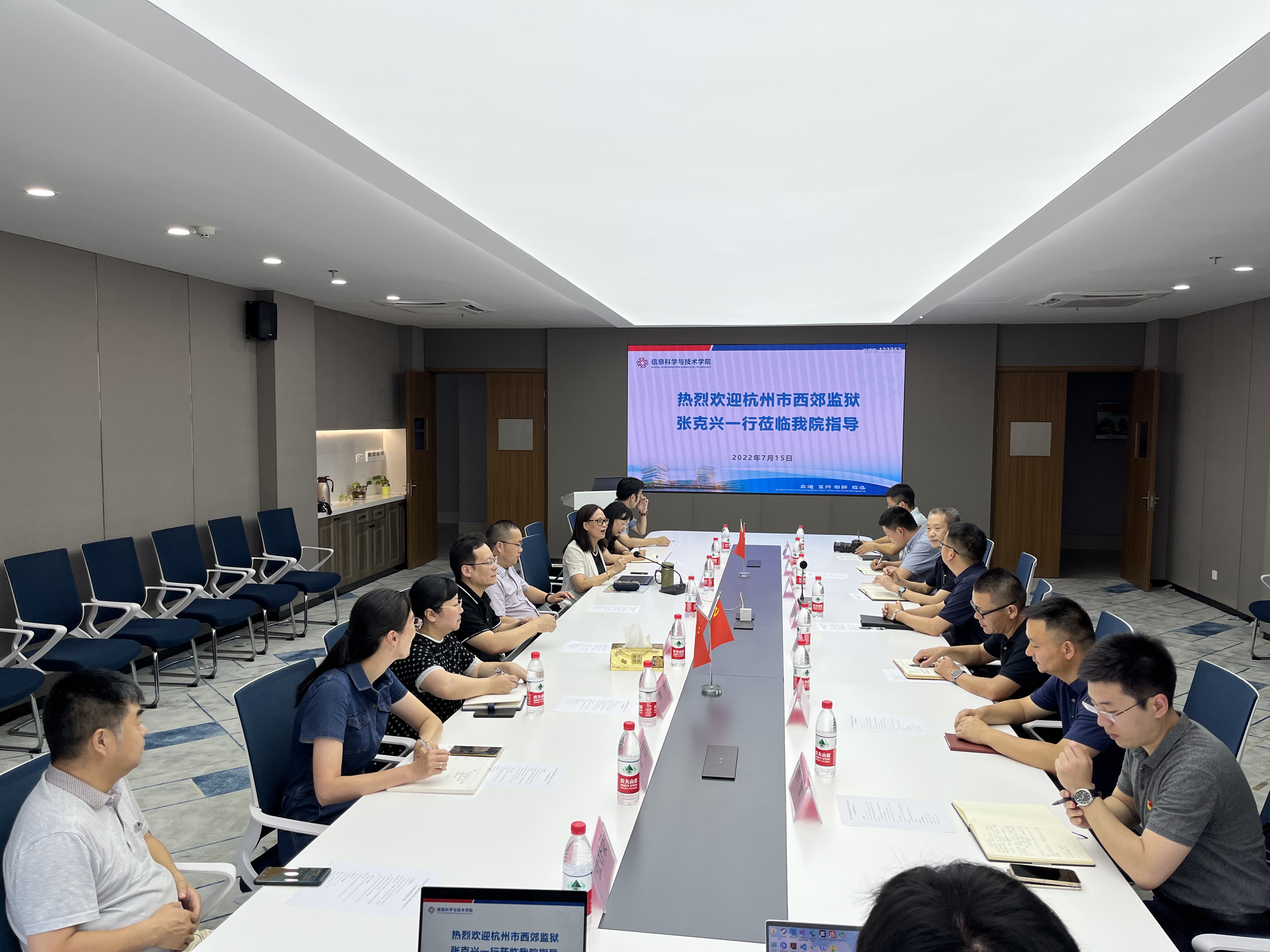 会议最后,学院党委班子就市西郊监狱党委领导到来再次表达由衷的欢迎与感谢,同时表示未来信息学院将稳步前进,做好各项党建工作,联动多方,用数字化社会服务助力“数智杭州”建设。双方表示:将以党建工作为引领,以专业实践和业务工作为抓手,促进基层党建形成内涵化、制度化、规范化、智慧化建设的新常态。(文/图 赵亚英 符孝天)