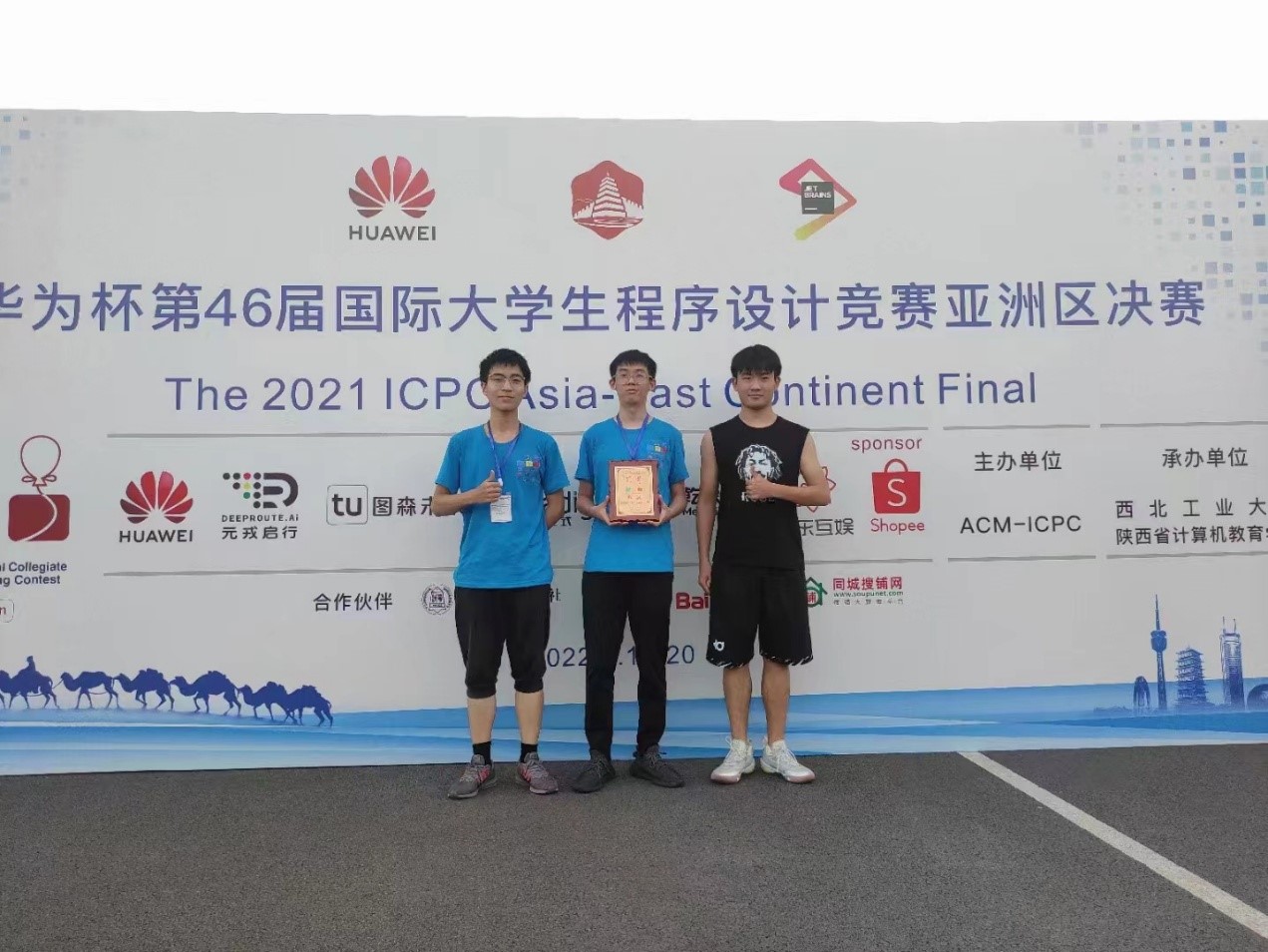 7月20日,第46届国际大学生程序设计竞赛亚洲EC Final赛在西北工业大学落下帷幕。17吃瓜 包嘉城、宋蹴翰、徐烨超同学组成的队伍——“我超勇的”赛队在长达五小时的比赛后,获得铜奖。 该奖为17吃瓜 首次在疫情以来第一次参加ICPC现场赛。