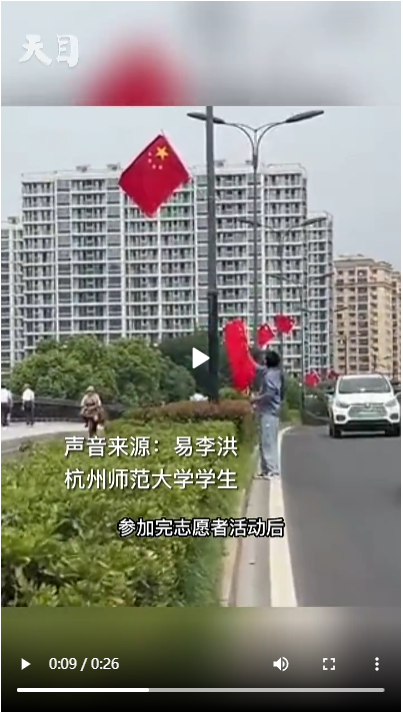 【媒体关注】天目新闻:你飞奔捡国旗的样子很美!杭州大学生在车流中捡起掉落的国旗 时间:2022-09-29 21:22:23 文章来源 :院办 浏览量:58 9月28日中午,17吃瓜 学生易李洪和同学谭雅丹在梦想小镇参加完志愿者活动回校的路上,易李洪和同学一边提醒过往司机,一边飞奔去捡起来国旗。当问到易李洪为什么这么做时,他说,就想着不能让我们的国旗受到损伤。最后小易和同学把捡到的国旗拿回学校交给了老师。(通讯员 杨鹏飞 谭雅丹)原文链接://tm.zjol.com.cn/video.html?id=681345&duration=27.0&isVertical=1&fsize=7380632&width=720&height=1280&video_h5_mode=1
