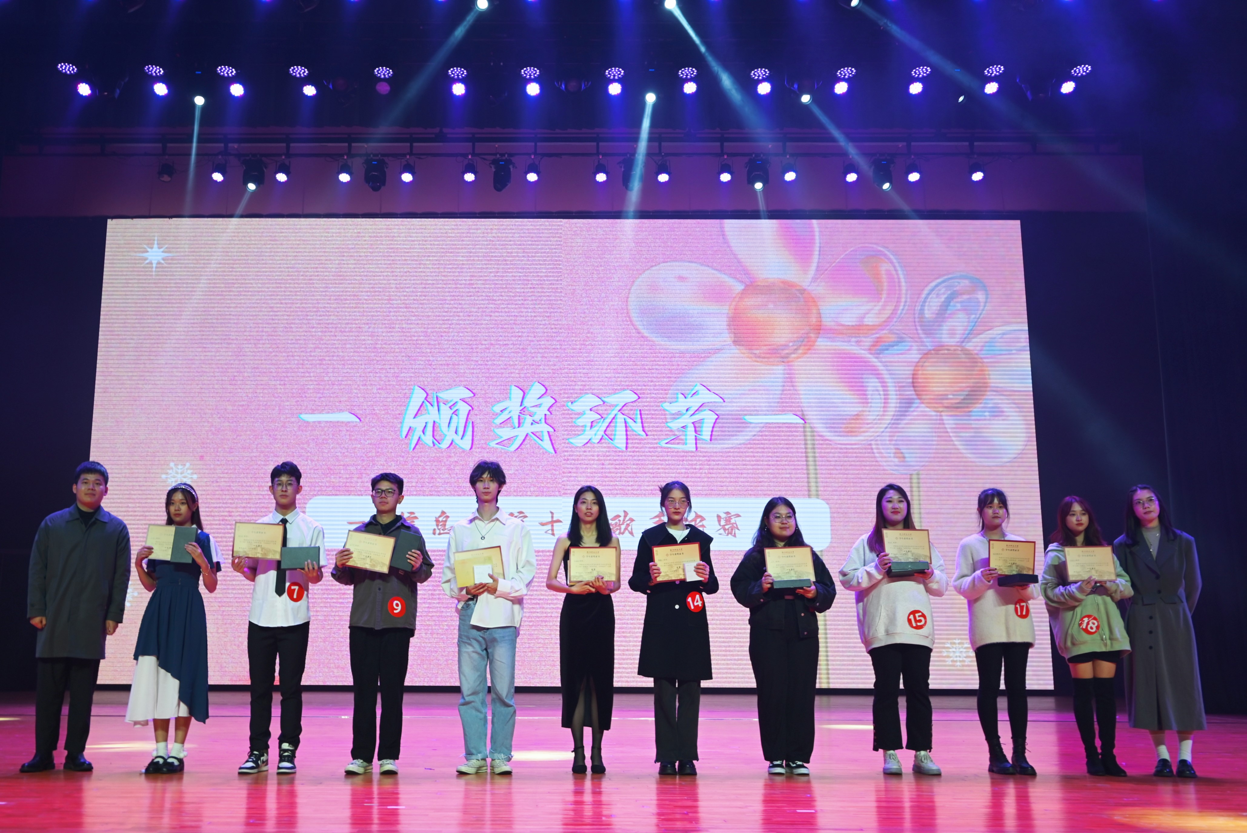 11月26日晚,信息学院第十二届十佳歌手总决赛在叔同剧场顺利举行,经过三小时的视听盛宴,最终,宋婧瑶、缪纪和黄霏尔三位同学取得冠军、亚军和季军。学院学科与科研办公室主任缪永伟、学院团委书记杨鹏飞和辅导员老师们到场参加。同时,部分优秀校友代表也受邀出席本次十佳歌手大赛决赛,他们分别是王氏集团副总裁王向阳、杭州亚运会组委会组织人事部邱文秦、学校马克思主义学院团委副书记朱曈、杭州市笕桥花园小学教师王楚轩。