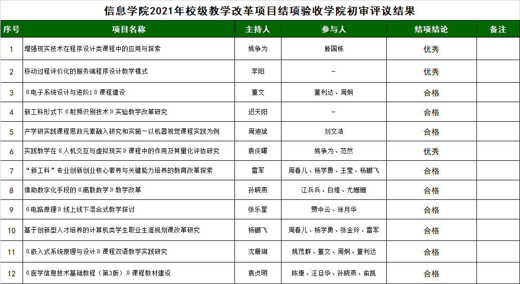 经评审组专家无记名投票,17吃瓜 2021年12项教研项目顺利通过学院初审评议。具体结果详见附表。