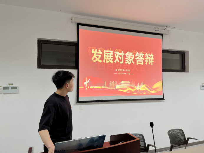 随后召开了2023上半年入党积极分子转发展对象答辩,研究生第一党支部8位入党积极分子进行情况汇报。高聪聪同志、钟强同志、曹天聪同志、赵媛媛同志、邹宸同志、陈洲同志、李海威同志和刘政喆同志就自己成为积极分子以来,在思想、学习、生活和工作方面的表现情况进行介绍,并阐释了各自的入党动机。与会党员就各位入党积极分子的情况进行了充分的讨论。支部书记王熙文老师对积极分子情况表示了肯定。时代在变,年轻的面孔也在变,但爱国爱党爱人民和追求进步的目标永远不变。广大青年应以党的旗帜为旗帜,以党的意志为意志,以党的使命为使命,坚定不移听党话、跟党走。担负时代使命,争做时代先锋!