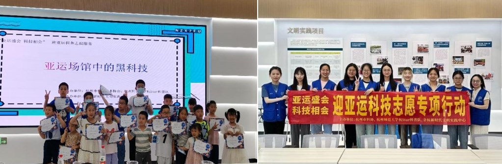 据杭Star科普队负责人解山娟老师介绍,团队将围绕“绿色、智能、节俭、文明”的亚运办赛理念,深入社区、学校、残疾人中心、餐厅和商场,针对智能场馆建设、活动保障、生态文明、运动健康等方面的科技知识,在全市开展50场亚运科普活动,引导更多市民深入了解亚运、参与亚运和享受亚运,为亚运增添一笔科普蓝,让科技之风吹入千万家。(图/文 谢吉妮 杨鹏飞)