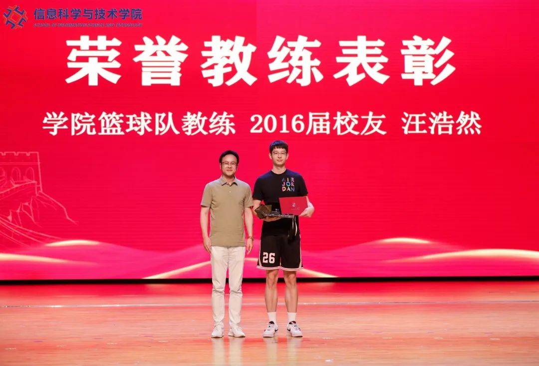 逐光相续,以爱扬帆。信息学院的健康长足发展离不开优秀校友的帮助,汪浩然校友“十年如一日”,不求回报地为信息学院学生篮球事业做出贡献,为此,学院特为他颁发“荣誉教练”的证书。