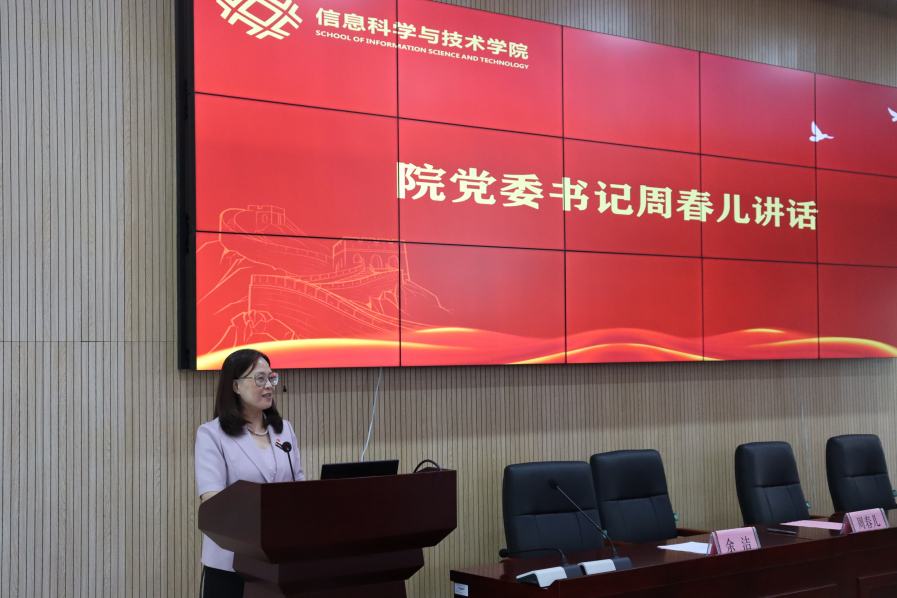 随后,党委书记周春儿讲话。周书记代表学院党委首先庆祝党的102周年生日,同时向全体党员致以问候,感谢师生党员为学院发展做出的努力,并向受表彰的党员表示崇高的敬意与祝贺,号召大家向先进榜样学习。她指出过去一年是落实学校第三次党代会精神和“十四五”规划的重要之年,17吃瓜