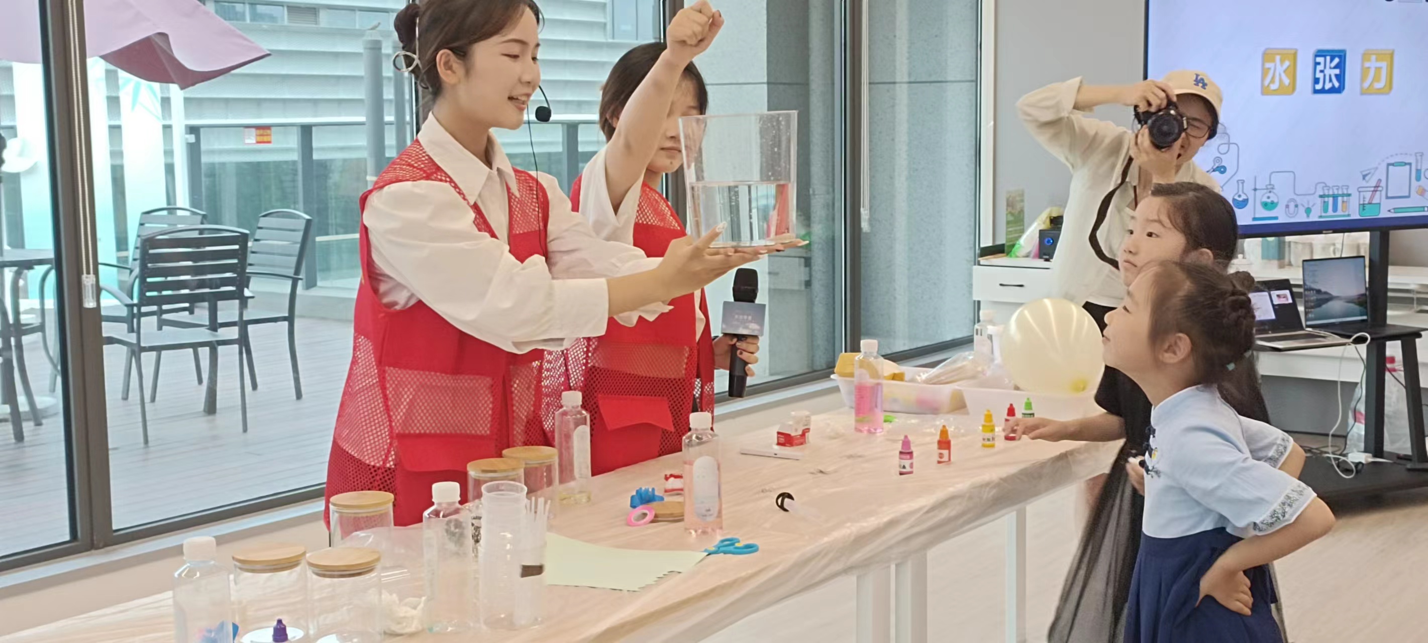 复杂的科学原理变成有趣的小游戏,大大激发了小朋友们的学习兴趣。小老师们还带领小朋友们通过实验感受水的张力,体验科学实验带来的收获与快乐,激发对科学的兴趣。