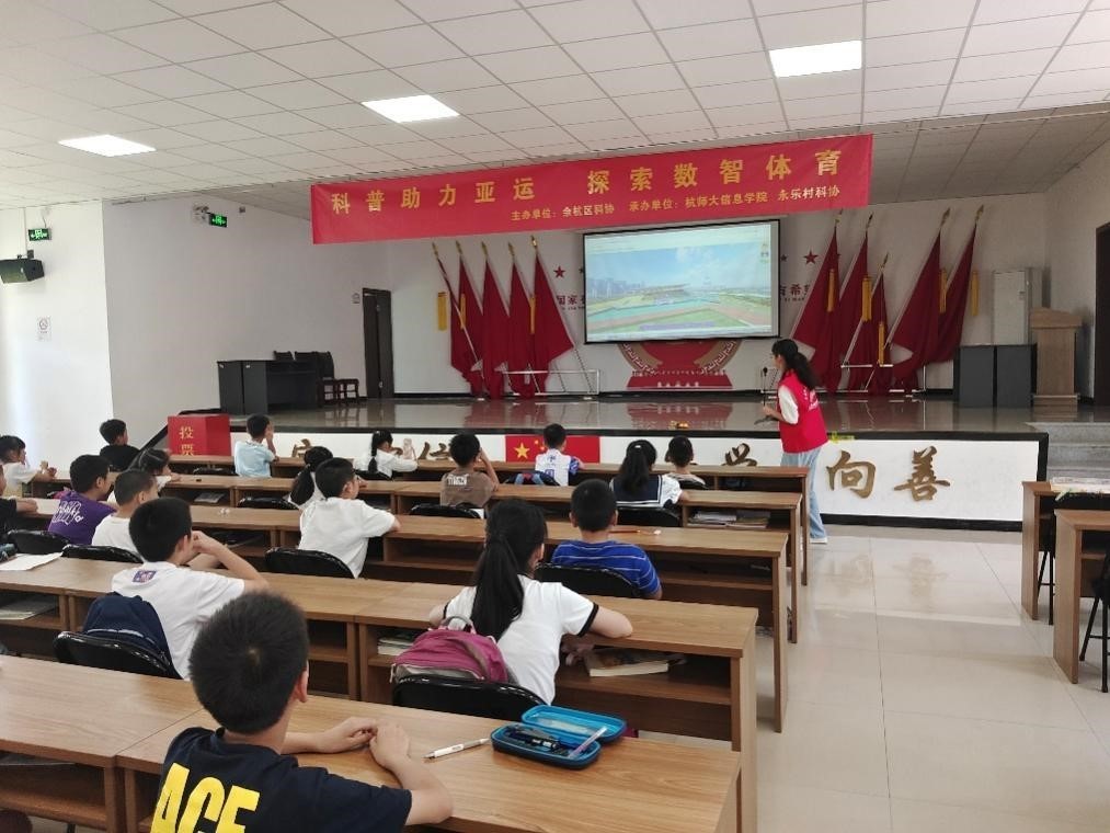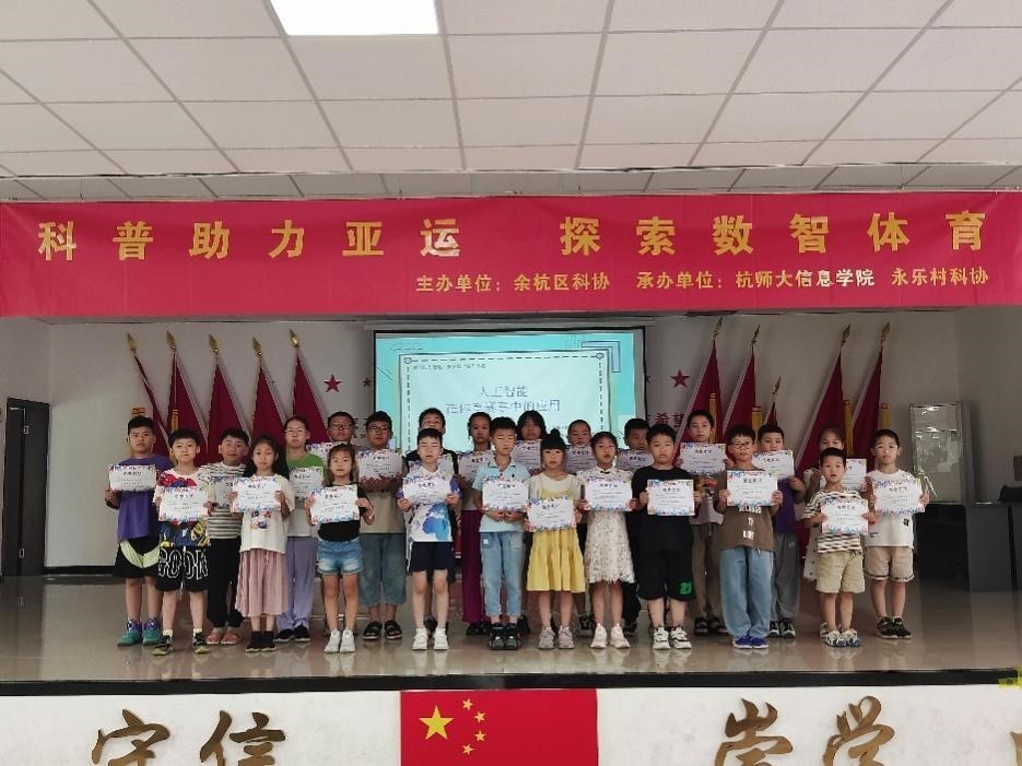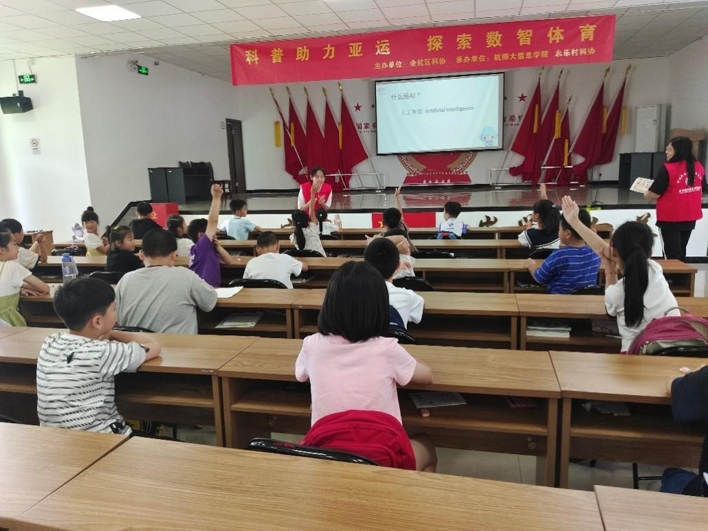 随着亚运会的临近,杭城到处都拉满了亚运的氛围。近日,一场别开生面的“科普助力亚运”活在仓前街道永乐村举行。来自杭师大信息学院的科普志愿者们带领永乐村的小朋友一同探索科学知识,了解亚运会,领略人工智能在体育赛事中的应用。这次活动不仅让小朋友们领略到科学的魅力,也展现了科技与体育竞技相融合的无限潜力。