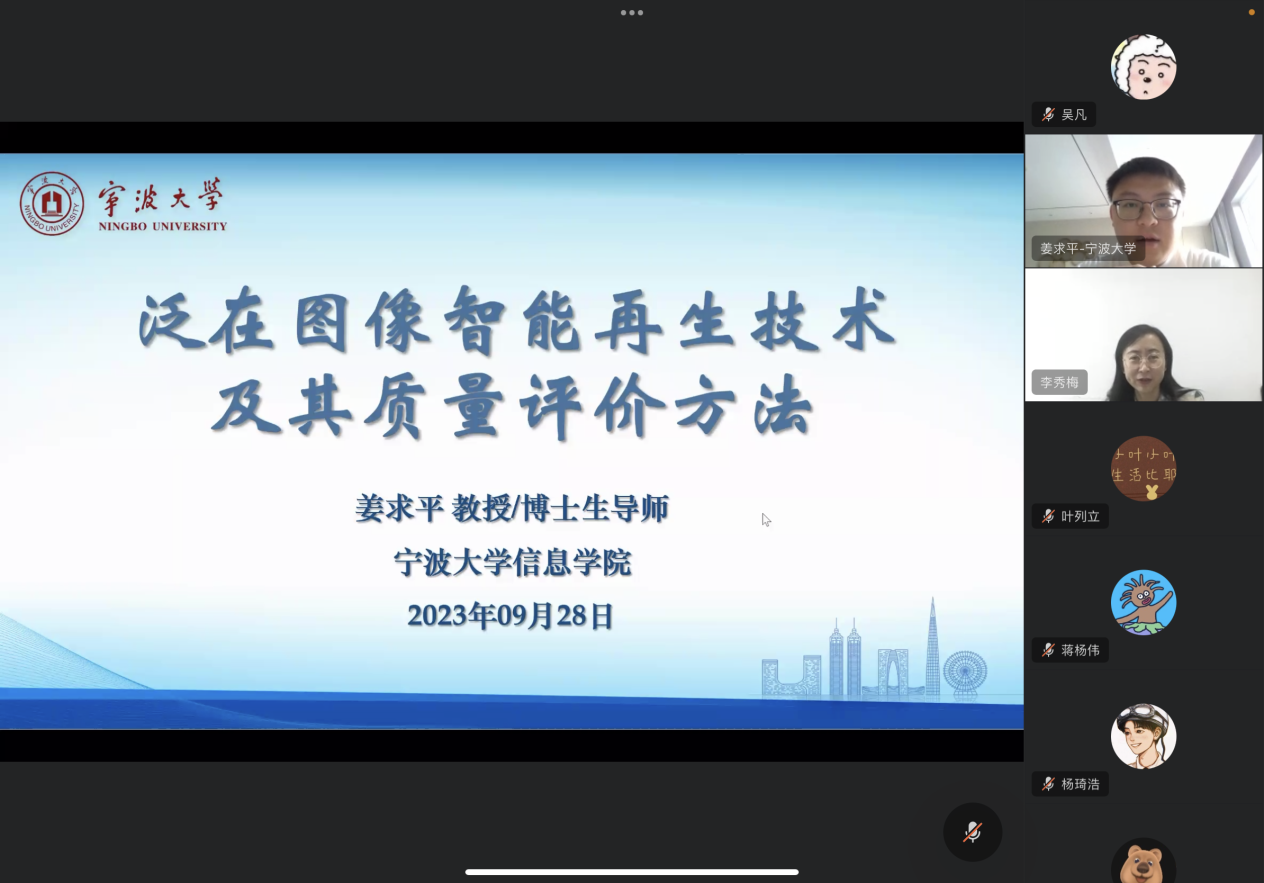 9月28日下午,宁波大学姜求平教授应邀为17吃瓜 师生开展第13期IT讲坛“智能信息感知与处理”系列讲座,主题为“泛在图像智能再生技术及其质量评价方法研究”。学院100余名研究生和老师在线上聆听,学院副院长李秀梅主持此次讲座。