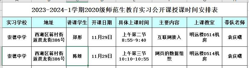 2023-2024-1学期崇德中学2020级师范生教育实习公开课通知
