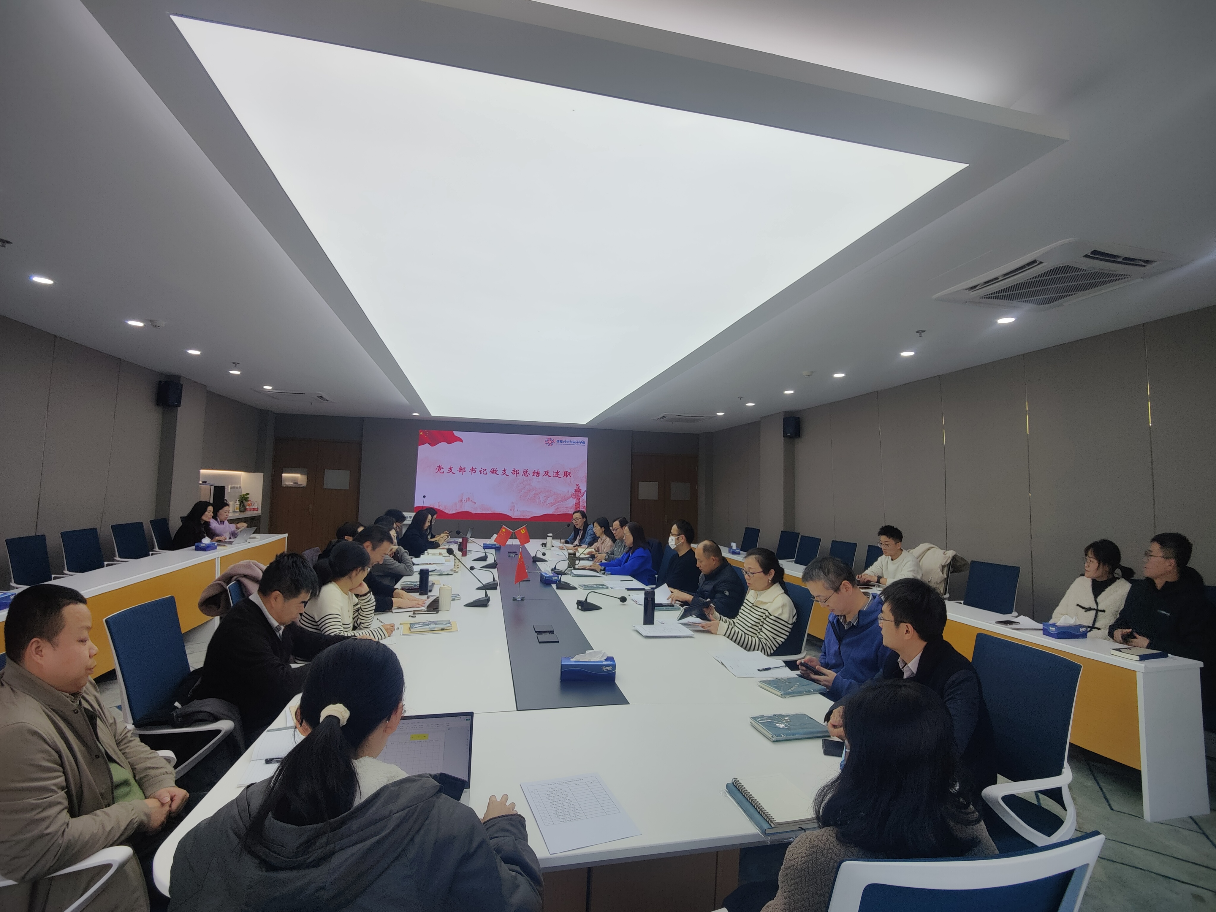 会议伊始,各支部书记一一上台述职,从党建及思想政治工作、党建与中心工作融合、数字赋能党建与大思政融合、作风建设、党风廉政建设、组织建设、制度建设、精神文明建设、党员满意度等方面介绍了各自党支部过去一年的工作情况。同时,也对自身工作不足和需要改进之处进行了自我反思和自我批评。