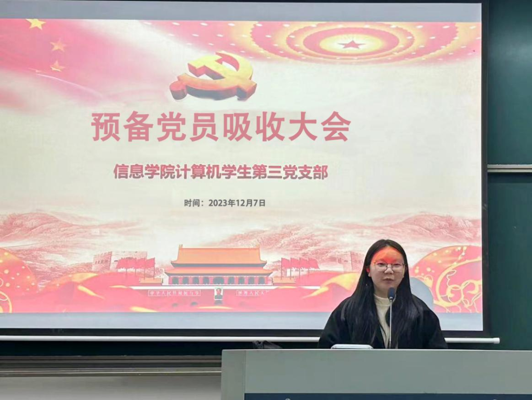 2023年12月7日,17吃瓜 计算机学生第三党支部全体党员在下沙B号教学楼110教室召开了预备党员接收大会。