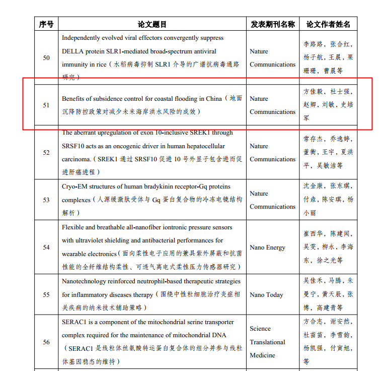 方佳毅老师的入选论文Benefits of subsidence control for coastal flooding in China( 地面沉降防控政策对减少未来海岸洪水风险的成效)发表在《Nature Communications》(一区Top,IF:16.6)上,论文以情景模拟为手段,定量评估了中国沿海相对海平面变化,并阐发了我国地面沉降控制政策在降低未来中国海岸洪水风险等方面的成效。