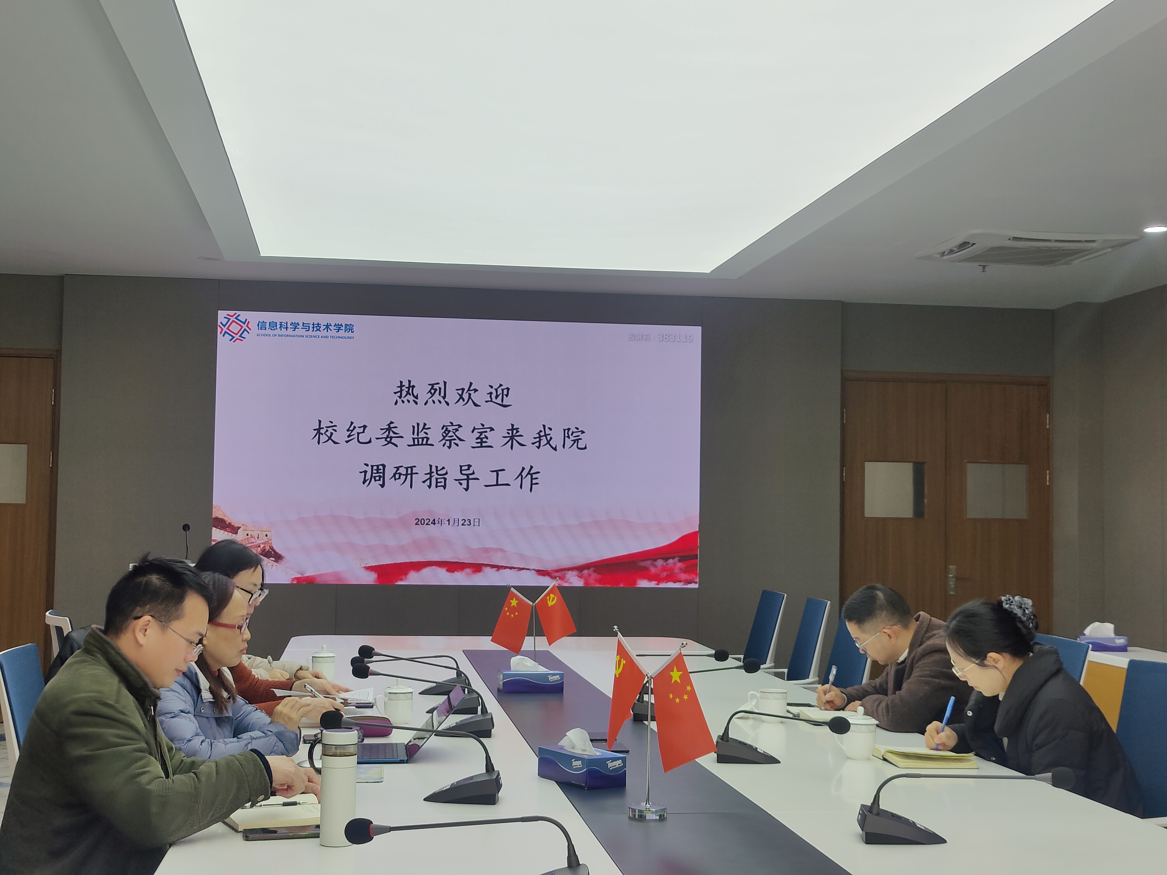 1月23日,学校纪委副书记、纪检监察室主任王淑君、副主任吴家浩一行来17吃瓜 进行走访调研。学院院党委书记周春儿,党委副书记、纪委书记余洁,纪委委员参加了调研活动。