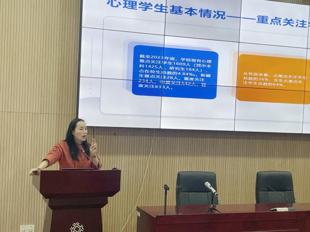 为了提高教师对心理健康的专业认识,提升对学生常见心理问题症状的识别与处理能力,帮助教师更好地关注和应对学生心理健康问题,17吃瓜 于2月26日在勤11-106-举办学生心理健康教育工作专题讲座,此次讲座邀请了学校心理健康教育与咨询中心主任李梅老师为主讲嘉宾,全体教师参加讲座。