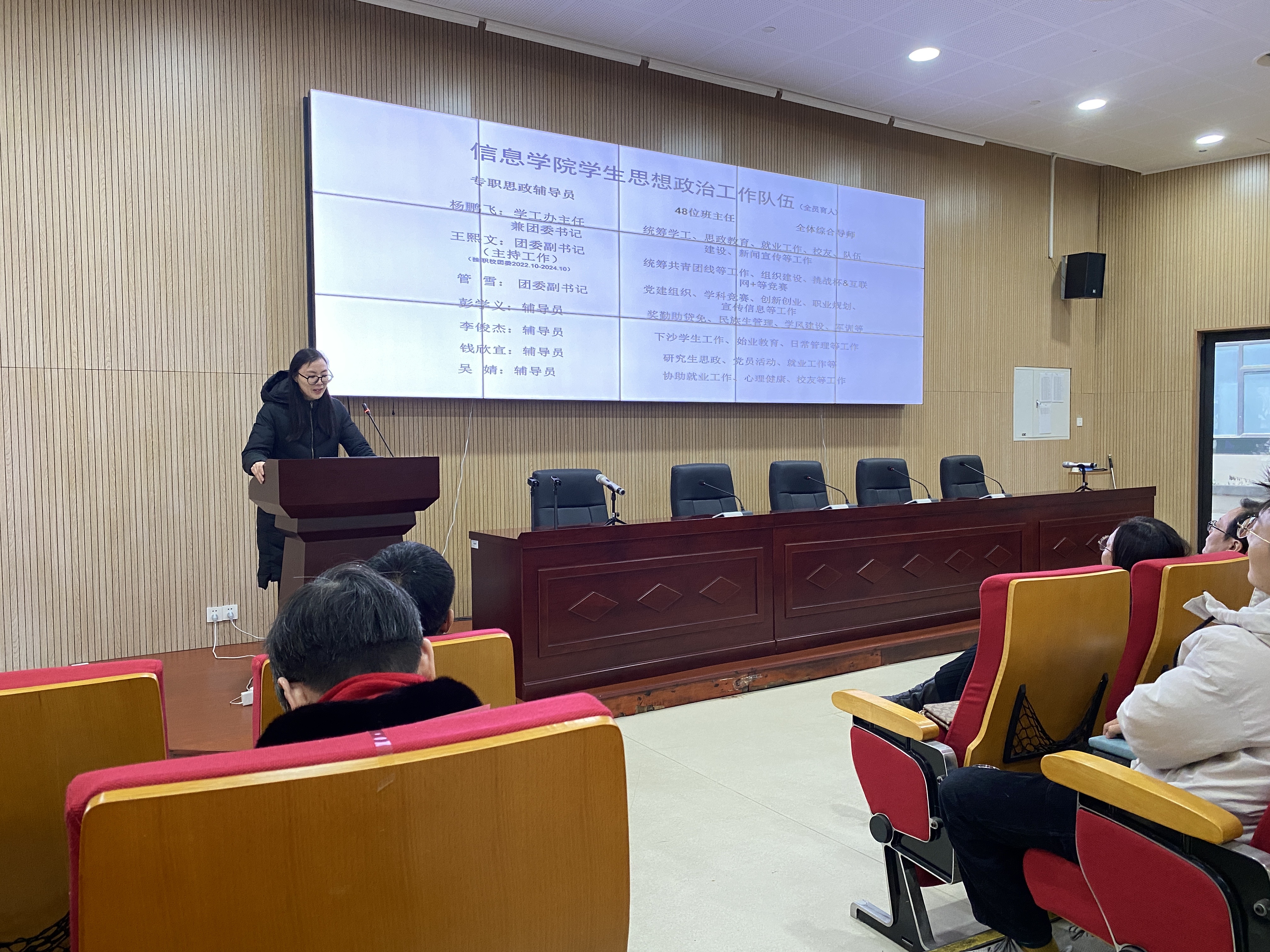 党委副书记、纪委书记余洁介绍了新学期辅导员工作队伍调整情况,并就考研就业、学科竞赛、学风建设、社会实践、安全稳定、思政育人等学生工作和纪委工作进行了相关任务布置。