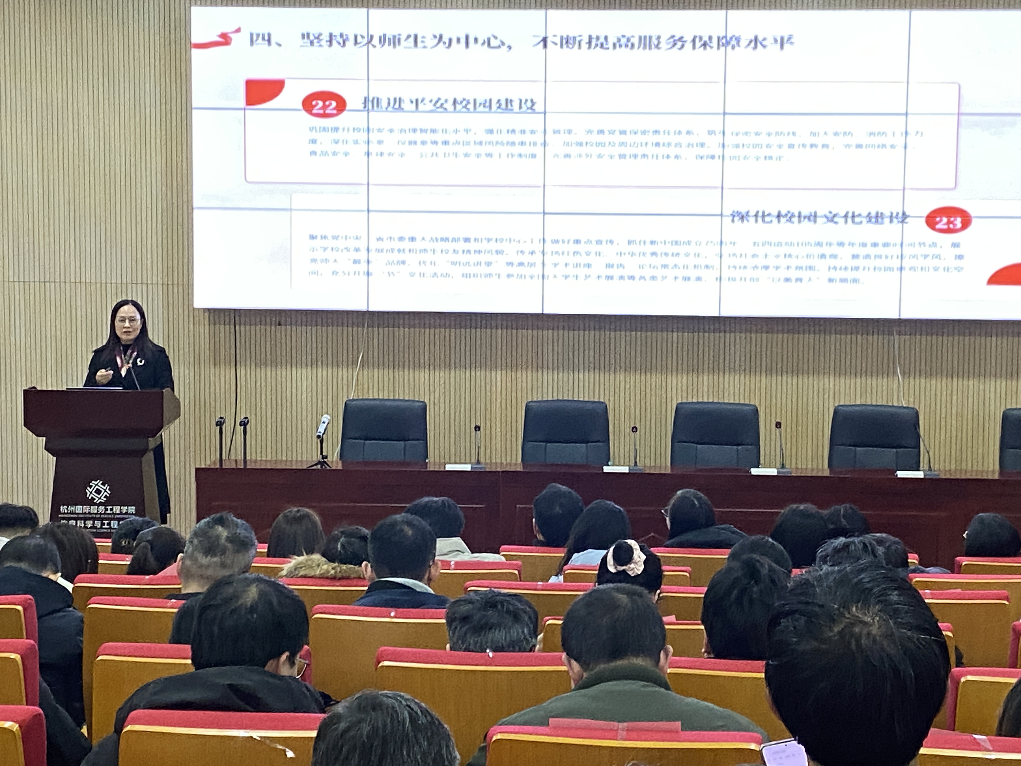 最后,党委书记兼副院长周春儿传达郭东风书记在2024年学校工作会议暨亚运总结表彰会上的讲话精神,以及学校党政工作要点,并就学院党政工作要点进行了任务布置。