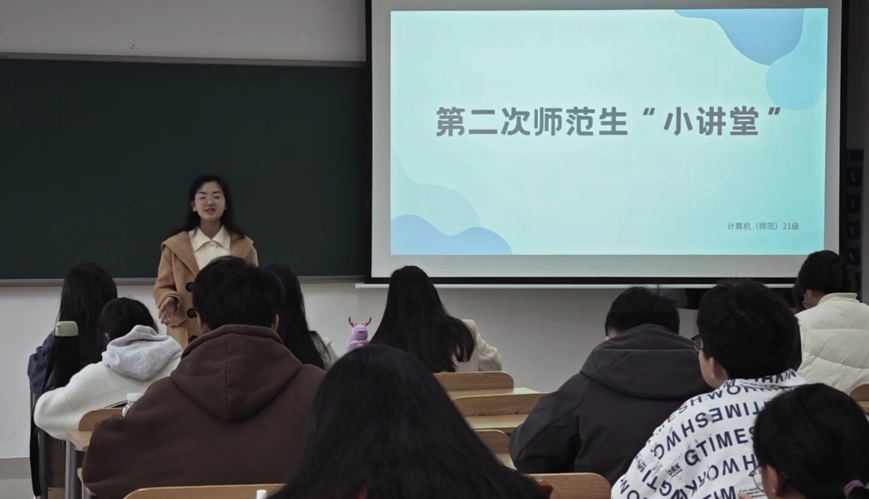 2024年3月18日,学院计算机科学与技术师范专业2021级学生第二次“小讲堂”在勤园6-404顺利举行,辅导员吴婧老师出席本次活动,部分2021级师范生参与观摩学习。