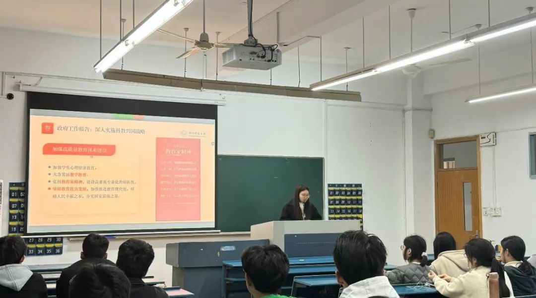 随后,李俊杰同志针对2024年全国“两会”精神进行学习,介绍了两会所召开的内容,并对“新质生产力”进行了深刻的讲解,各位党员从原来的一知半解到现在对这一词有了充分的了解。杨萍萍同志表示虽然这些专业解释术语听起来距离我们当代大学生十分遥远,但在我看来,要实现科技创新的首要任务就是人才培养,只有源源不断的人才,才能使科技不断地进步和发展,我们作为新时代的接班人,作为人才培养的关键组成部分,我们应当尽力为国家奉献出自己的一份力。同时,作为新时期大学生,我们应当为自己所处的盛世而感到自豪和兴奋,这些年来国家为了培养一代又一代的学子付出了巨大的财力、物力和精力,我们应当回馈国家。因此,在生活中我们需要以全心全意为人民服务作为坚定信念,时刻鞭策、鼓励自己,充分利用课余时间加强学习,争取有朝一日能让祖国以我们为荣。