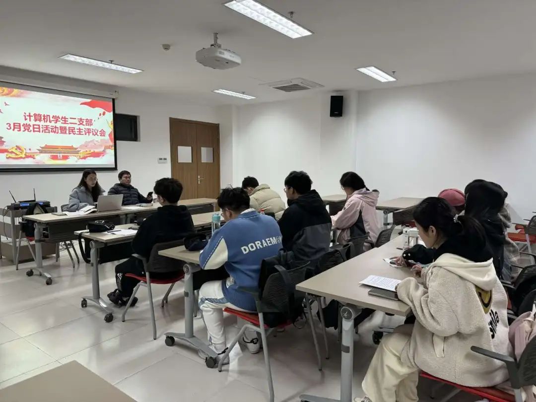 2024年3月14日下午,信息学院计算机学生第二党支部全体成员于勤园12-202和12-204两个会场召开了3月党日活动,会议由胡文双同志和张佳璇同志主持。
