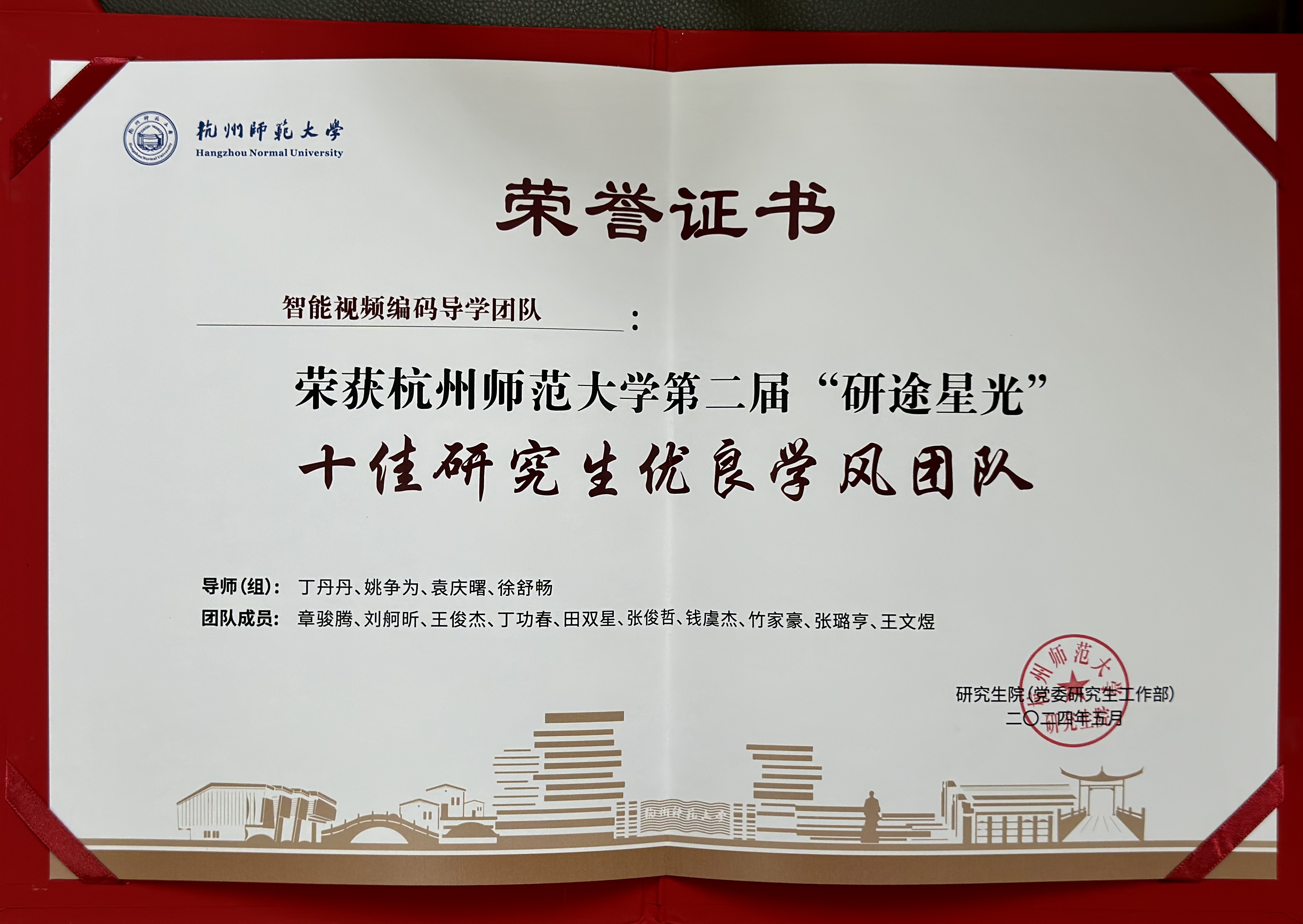根据《关于开展第二届“研途星光”研究生优良学风团队评选工作的通知》,经各研究生导学团队申报、学院初评、研究生院(党委研究生工作部)审核、专家评审,17吃瓜 智能视频编码导学团队荣获第二届十佳研究生优良学风团队,深橡导学团队获第二届研究生优良学风团队提名奖。