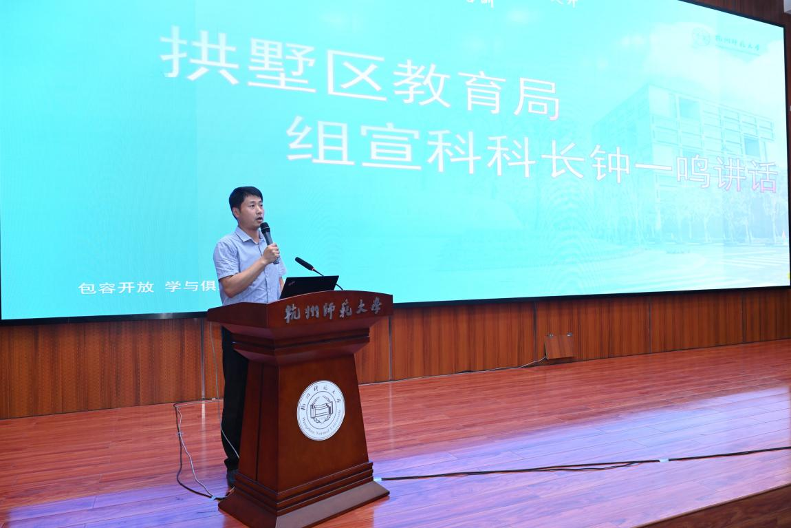 最后,拱墅区教育局组宣科钟科长钟一鸣讲话。钟科长充分肯定了本次培训成效,对校长们协调好工学矛盾,积极参与培训及论坛活动给予高度赞扬。钟科长表示经过培训班的学习,希望大家能够进一步掌握教育改革发展的方向和要求,正确应用人工智能等新技术,领导课程改革、创新课堂教学、引领教师成长、优化管理及校园治理能力、全面提升教育现代化水平,促进学生全面发展,把培训所学的知识和理念运用到实际工作中,为学校的发展注入源源不断的活力,推动学校高质量发展。