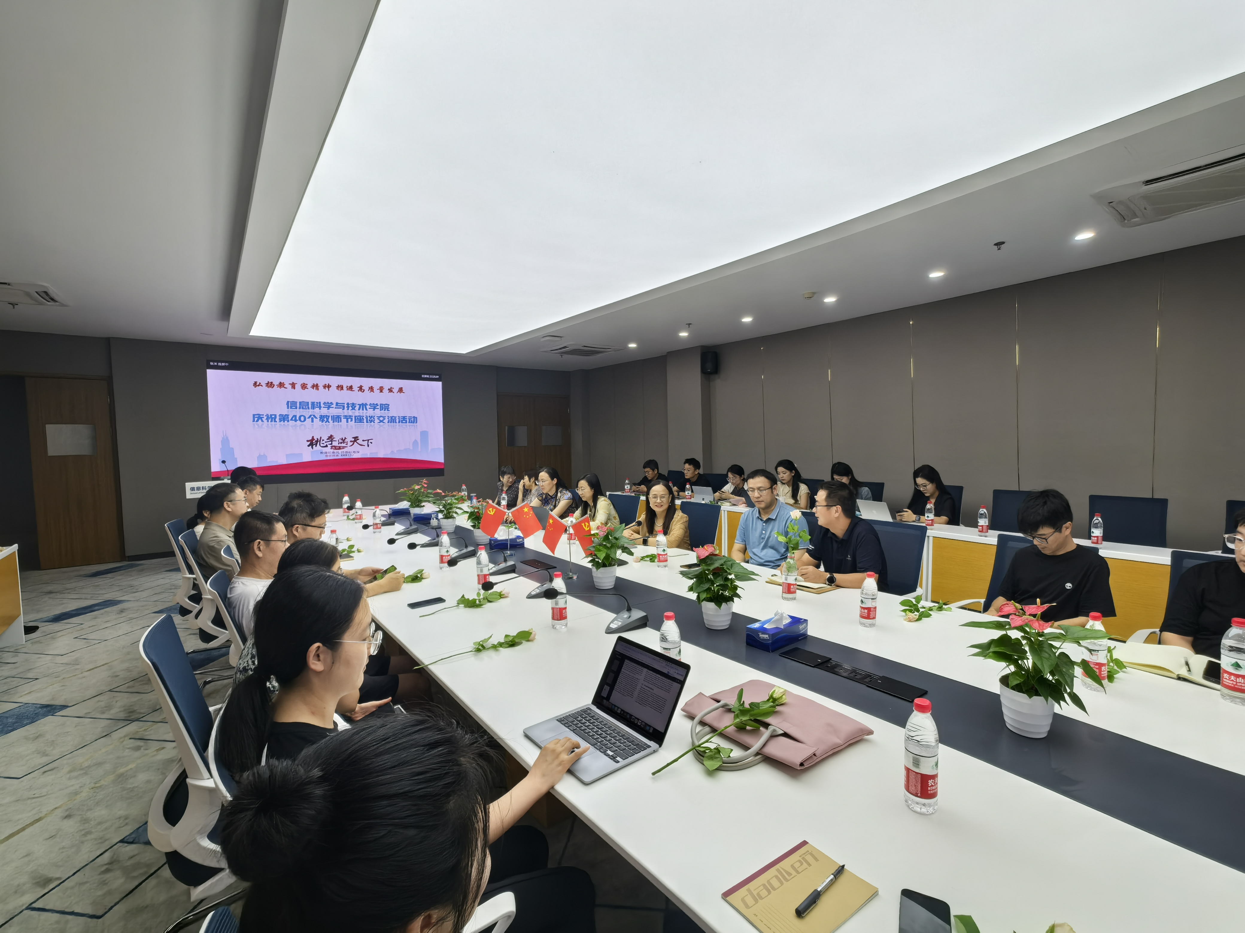 为庆祝第40个教师节,信息学院于9月10日召开主题为“弘扬教育家精神 推进高质量发展”的座谈会。会议由学院党委书记周春儿主持,党政班子、各系各部门教师代表参加会议。