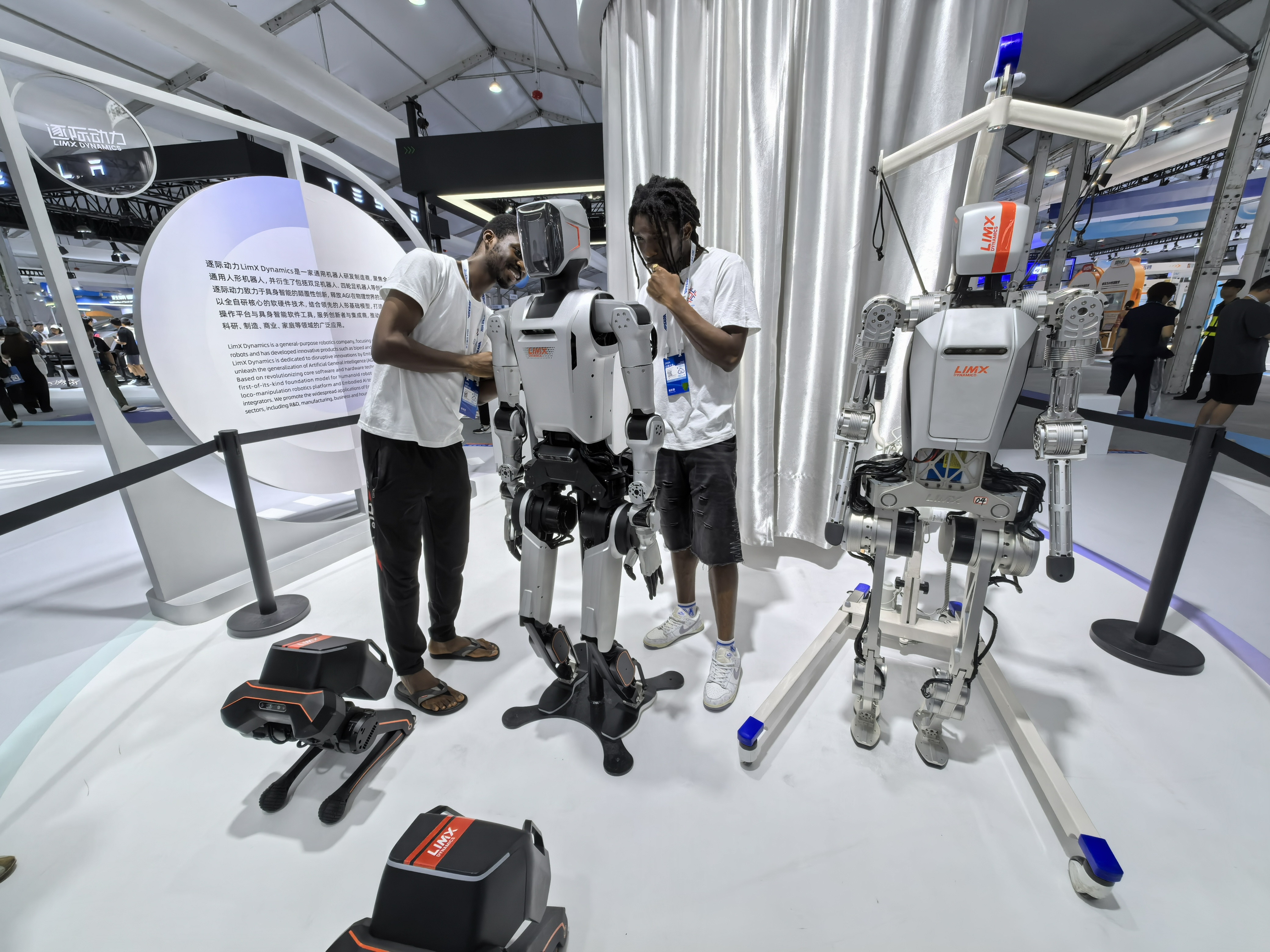 来自赞比亚的卡布(KAPAMPA MUKUKA CHANDA)和来自尼日利亚的卜燃(ABOKI BRENDAN GIDEON)被前沿应用馆中展示的多款人型机器人深深吸引。对于这些“大脑”“小脑”和身体能够协调得像人一样又稳又快又灵活,上得厅堂、下得厨房,能够在各种场景中一展拳脚的机器人,两位非洲学生受到了深深的震撼。
