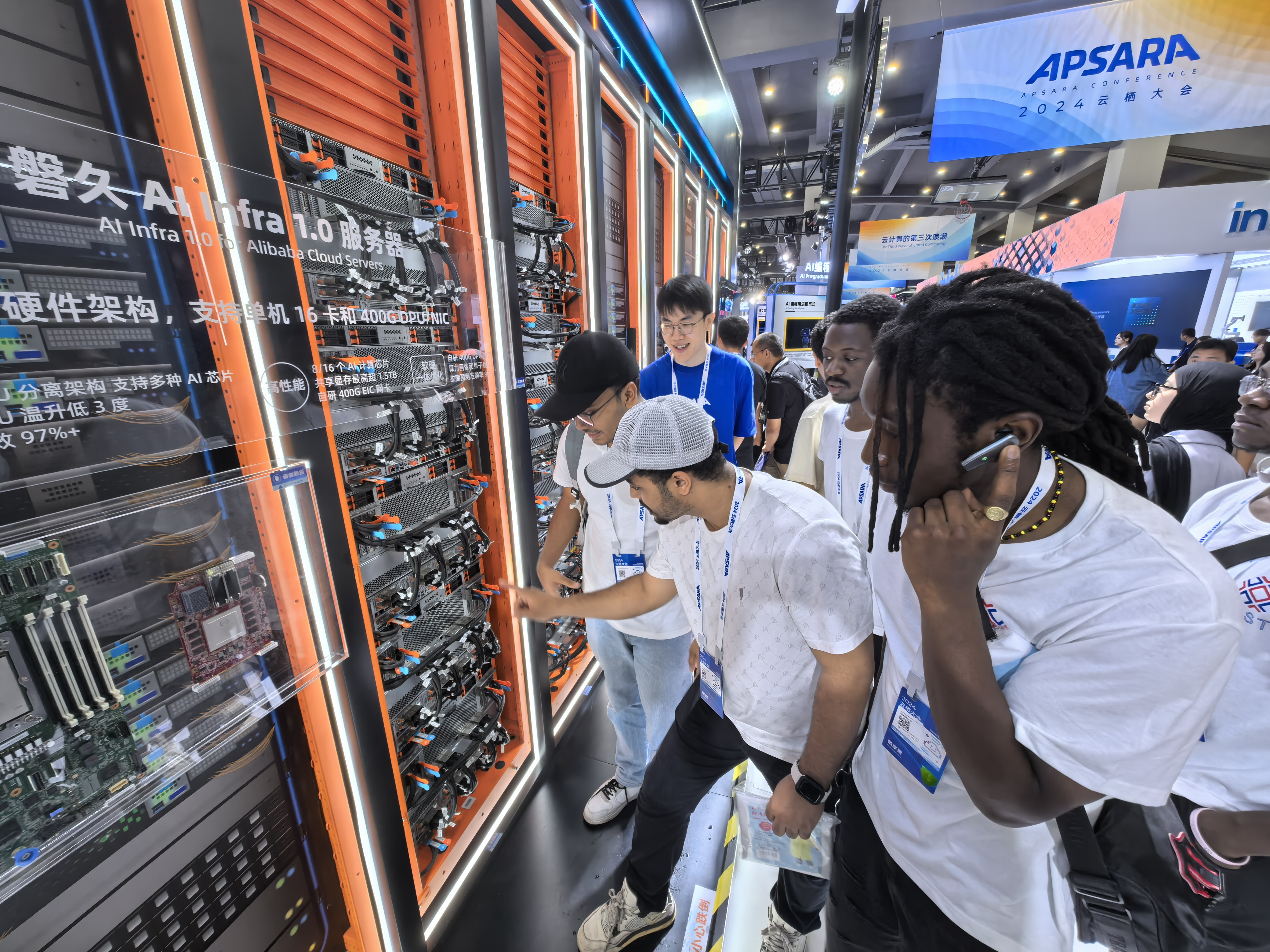 国际学生在计算馆参观磐久AI Infra服务器
