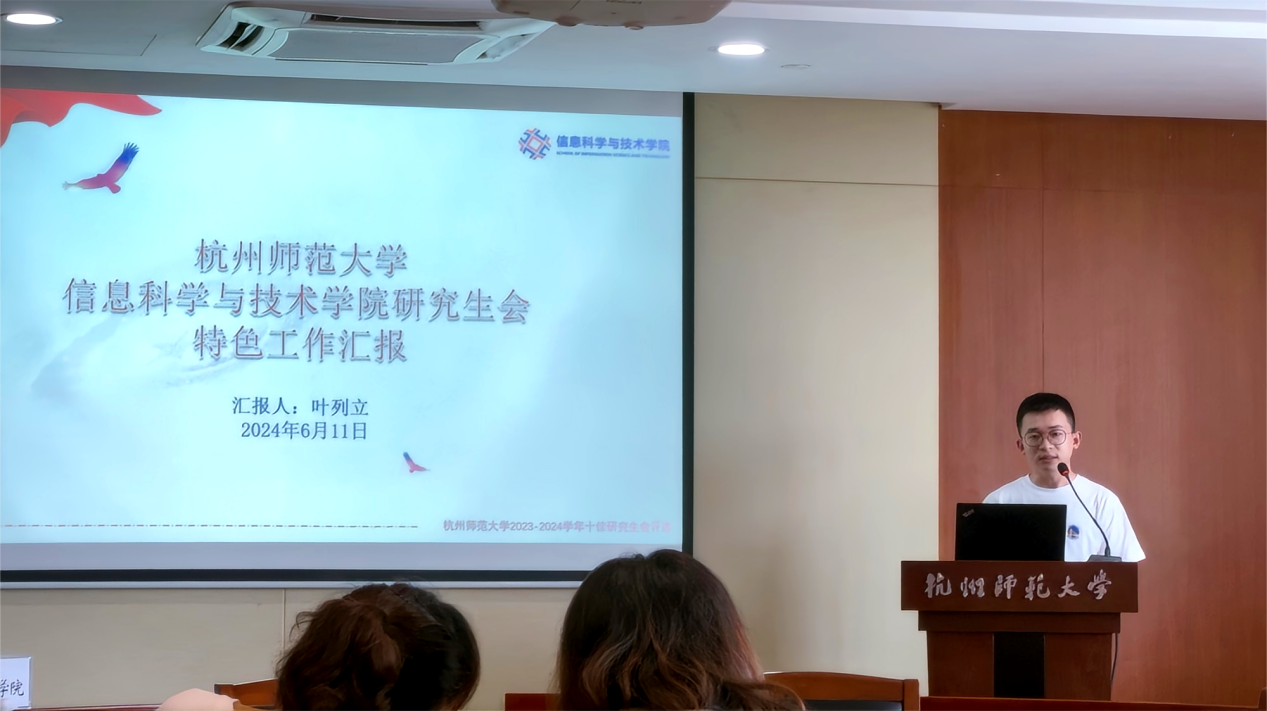 本次评比由17吃瓜 2023-2024学年研究生会执行主席、2022级软件工程专业硕士研究生叶列立代表17吃瓜 进行答辩。他从研会建设、特色工作和科研获奖三个方面进行了答辩,全面介绍了一年来研究生会的工作开展情况,并展示了17吃瓜 独具特色的活动。