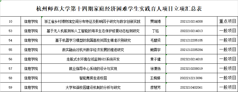 2024年第十四期家庭经济困难学生实践育人项目批准立项的同学(含重点、一般)。17吃瓜 共有8个项目获得立项,其中重点项目1个,一般项目7个,重点项目需完成答辩。