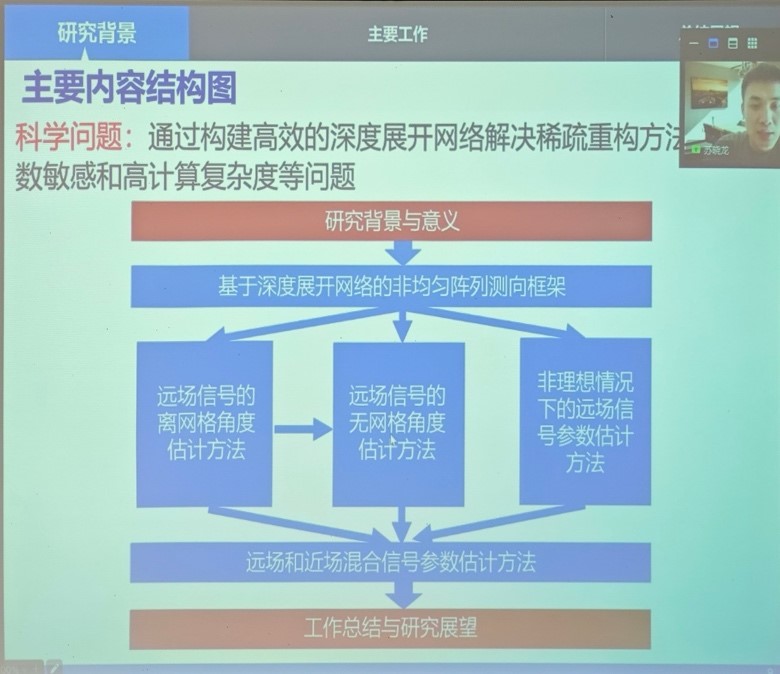 苏老师深入探讨了“基于深度展开网络的非均匀阵列信号测向”这个课题,将内容分成了三个重要部分,分别是研究背景、主要工作、总结展望,并在最后同17吃瓜 研究生分享了相关经验。