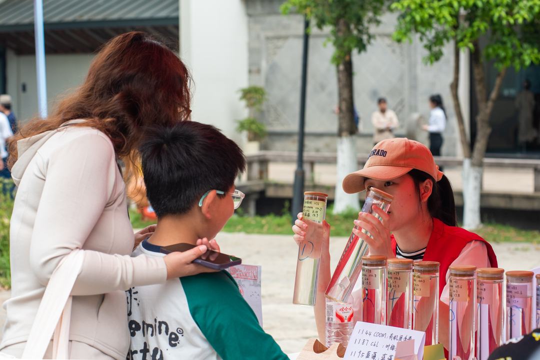 “智趣擂台・知识问答挑战” 环节,50道环保知识题通过抽小球随机抽取,参与者踊跃答题,巩固环保知识。“涟漪方程式・碧波实验室” 则让观众亲自参与湿地水质观测。排列整齐的透明试管中,是来自西溪湿地的不同点位采集的水样。研究院的科研人员现场指导,从采样到分析,分享在水质监测研究中的经验与方法,帮助大家理解水质监测数据背后的生态含义,感受科学探索的严谨,明白保护水资源的意义。