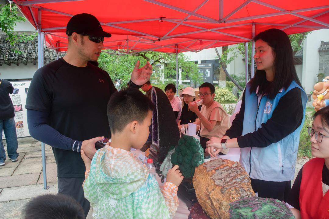 “自然瑰宝・矿物化石展览”里,志愿者团队以深入浅出的讲解,揭开矿物形成的奥秘。他们介绍形态各异的矿物化石和精美矿石饰品,展现大自然的鬼斧神工与人类艺术的巧妙结合。