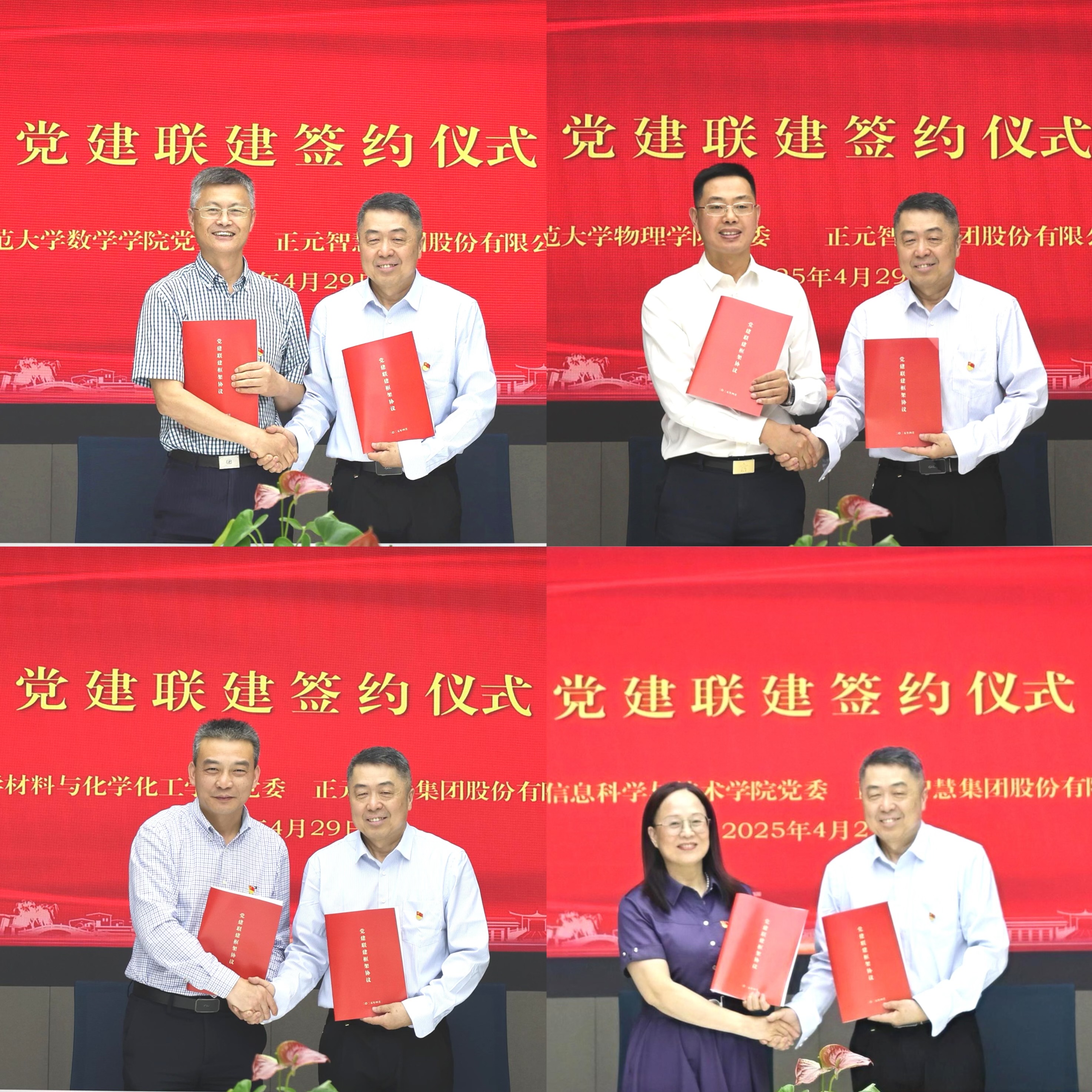 随后,数学、物理、材化、信息四个学院党委分别与正元智慧集团党总支签署党建联建协议。校企双方将在党建共建、协同育人、科研合作、成果转化等领域开展全方位合作,共同探索“党建+科技+产业”的创新生态模式。