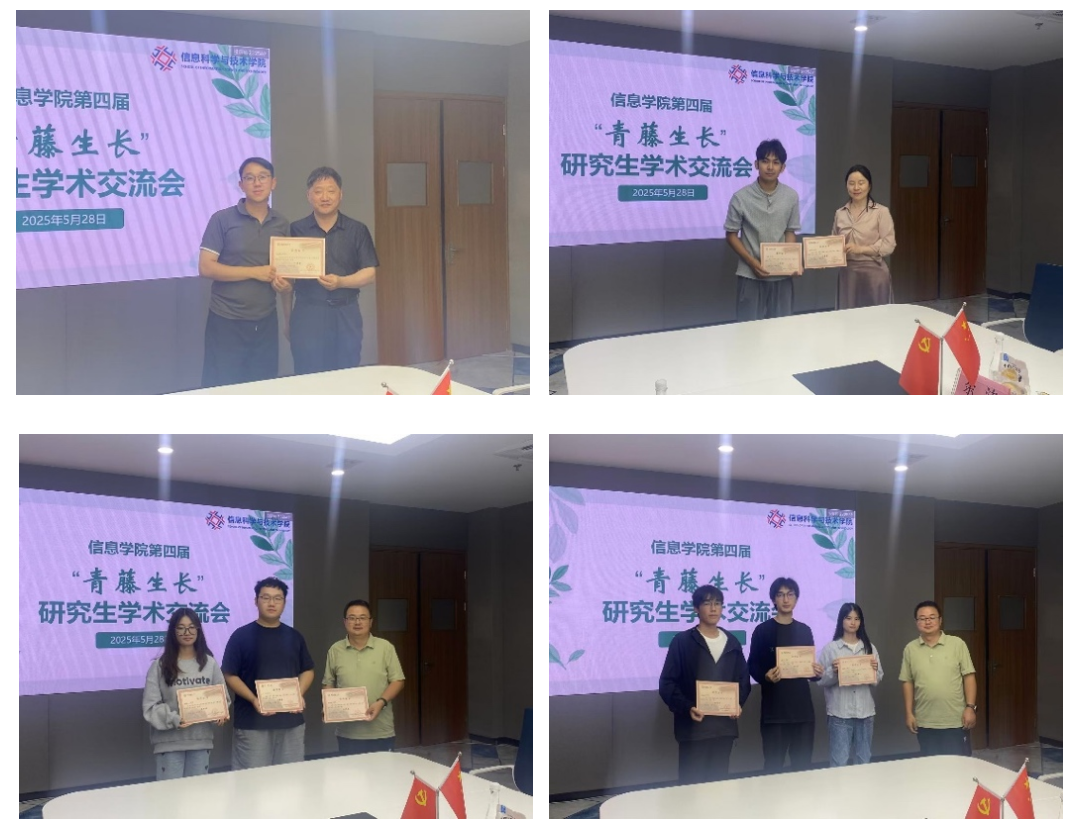 本届“青藤生长”研究生学术交流会,不仅为研究生提供了展示与交流的平台,更进一步推动了学院学术氛围的建设与科研人才的培养。信息学院将继续秉持“以学术促成长,以交流促创新”的理念,助力研究生在学术的道路上勇攀高峰,书写属于自己的“青藤生长”新篇章。