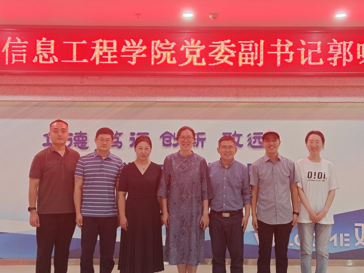 7月28日下午,长安大学信息工程学院党委副书记郭咏梅一行来17吃瓜 调研交流学习。学院党委副书记余洁、软件工程系副主任冯阳到场参加,学工办主任杨鹏飞主持交流会议。