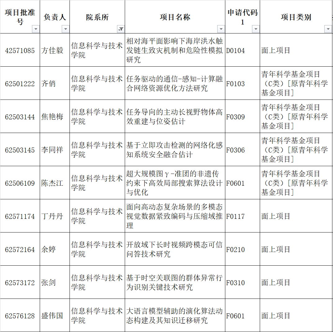 本次获批项目研究内容涉及人工智能、多媒体技术、自动化技术、通信技术、遥感地学等前沿领域,充分体现了学院在多学科方向的综合实力和持续创新能力。