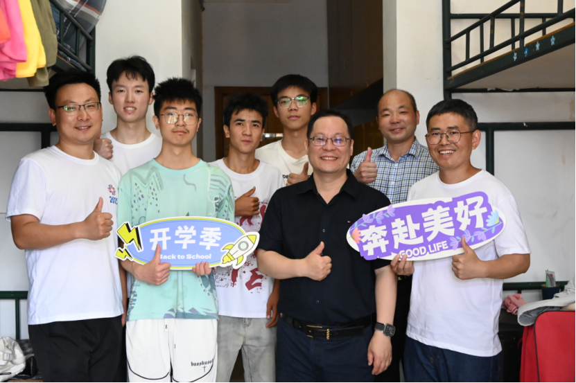 学院领导携班主任和辅导员走进学生宿舍,关心新生进校的适应情况,并希望同学们后续碰到问题能及时跟学院反映。