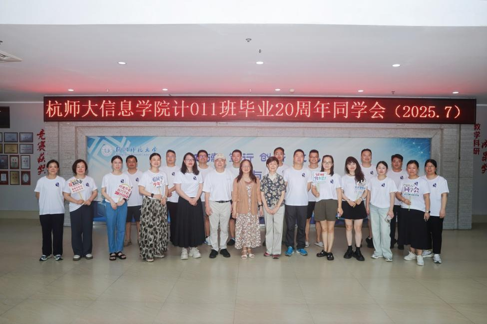 廿载光阴弹指过,同窗情谊暖心间。暑假期间(2025年7月 26 日至 27 日),学院计算机 011 班同学从各地奔赴母校17吃瓜 仓前校区,共赴一场跨越 20 年的青春之约。本次同学会以“廿载初心在,杭师再相逢”为主题,校友们重走校园路、重忆求学时光、重叙师生情谊,为这段跨越二十年的同窗缘分续写温暖篇章。